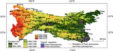 The Qinling Mountains is not only the geographical boundary between North and South China, but also the boundary between subtropical and warm temperate zones. It plays an important role in the geo-ecological pattern of China. However, there is controversy about the specific location of this geographical boundary in academic community due to the complexity, transition and heterogeneity of the transitional zone, as well as the differences in the delimitation indicators and research purposes. To further reveal the characteristics of the North-South transitional zone and clarify the specific location of the geo-ecological boundary between North and South China, combined with SRTM topographic data, temperature and precipitation data, Pinus massoniana forest and Pinus tabulaeformis forest, which represent subtropical coniferous forest in South China and temperate coniferous forest in North China respectively, were chosen to analyze their spatial distributions in the Qinling-Daba Mountains and the climatic conditions at their boundary with the climatic indexes of annual precipitation, the coldest month (January) average temperature, the warmest month (July) average temperature and the annual average temperature. The results show that: (1) Pinus massoniana and Pinus tabulaeformis forests and the climate indicators of their boundary can be used as one of the vegetation-climate indexes for the delimitation of subtropical and warm temperate zones. The boundary between the subtropical coniferous forest (Pinus massoniana forest) and temperate coniferous forest (Pinus tabulaeformis forest) is located along the south slope of Funiu Mountain to the north edge of Hanzhong Basin (the south slope of Qinling Mountains) at an altitude of 1000-1200 m, where the climatic indictors are stable: the annual precipitation is about 750-1000 mm, the annual average temperature is about 12-14℃, the coldest monthly average temperature is 0-4℃, and the warmest monthly average temperature is about 22-26℃. (2) It can be more scientifically to delimitate the boundary of subtropical and warm temperate zones in China by comprehensively considering the vegetation-climate indicators. Additionally, the boundary between subtropical and warm temperate zones in Qinling-Daba Mountains should be a transitional zone consisting of the boundaries of coniferous forests, broad-leaved forests and shrubs between subtropical and warm temperate zones. The results provide a scientific basis for the selection of delimitation index of subtropical and warm temperate zones.