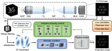 Compared to light-field microscopy (LFM), which enables high-speed volumetric imaging but suffers from non-uniform spatial sampling, Fourier light-field microscopy (FLFM) introduces sub-aperture division at the pupil plane, thereby ensuring spatially invariant sampling and enhancing spatial resolution. Conventional FLFM reconstruction methods, such as Richardson–Lucy (RL) deconvolution, may face challenges in achieving optimal axial resolution and preserving signal quality due to the inherently ill-posed nature of the inverse problem. While data-driven approaches enhance spatial resolution by leveraging high-quality paired datasets or imposing structural priors, physics-informed self-supervised learning has emerged as a compelling precedent for overcoming these limitations. In this work, we propose 3D Gaussian adaptive tomography (3DGAT) for FLFM, a 3D Gaussian splatting-based self-supervised learning framework that significantly improves the volumetric reconstruction quality of FLFM while maintaining computational efficiency. Experimental results indicate that our approach achieves higher resolution and improved reconstruction accuracy, highlighting its potential to advance FLFM imaging and broaden its applications in 3D optical microscopy.
