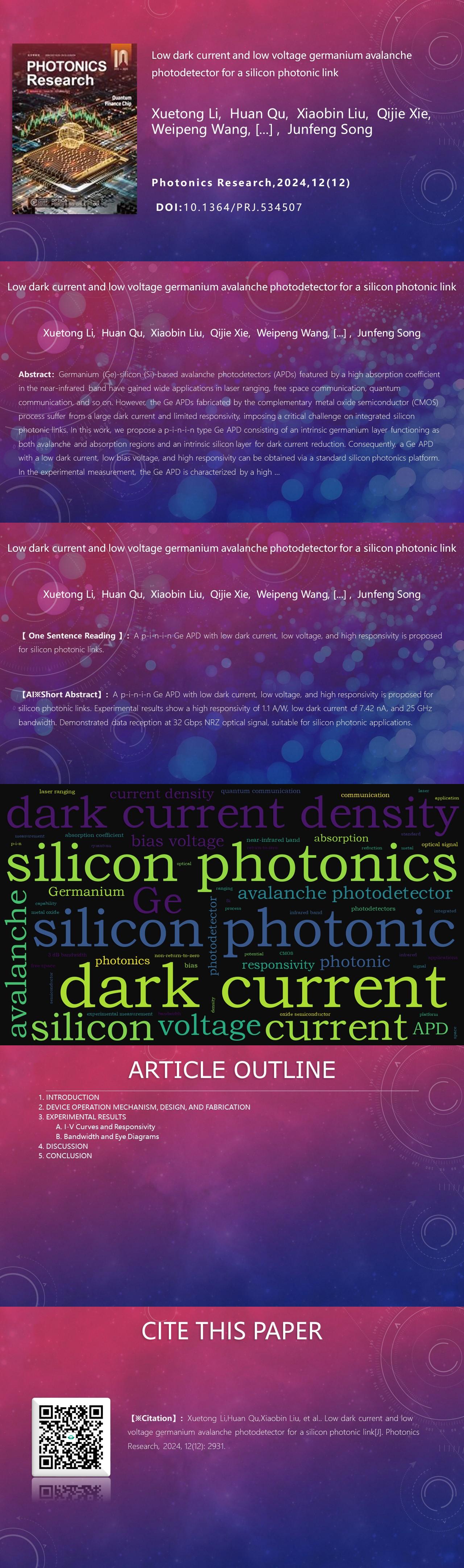 [7] Y. Xiang, H. Cao, C. Liu. High-performance waveguide Ge/Si avalanche photodiode with simplified fabrication processes. Asia Communications and Photonics Conference (ACP), T1D.4(2021).