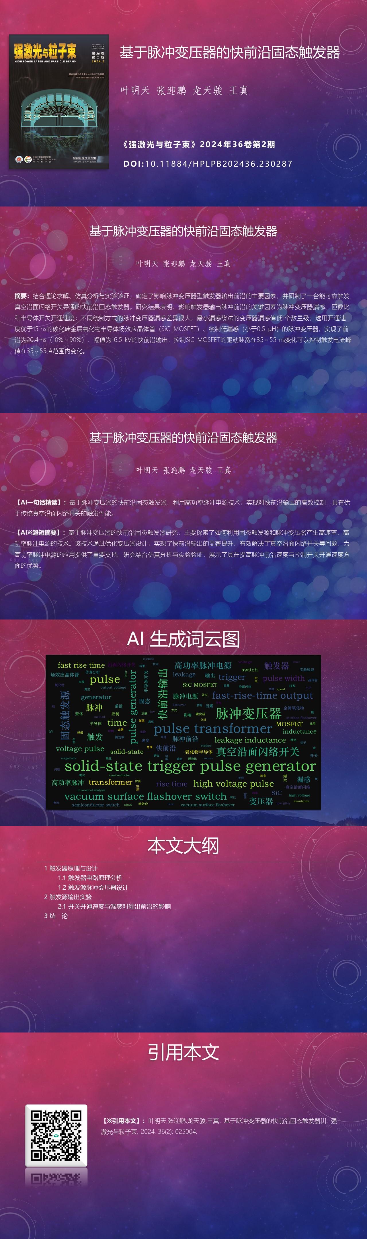 Mingtian Ye, Yingpeng Zhang, Tianjun Long, Zhen Wang. Fast-rise-time solid-state trigger pulse generator based on pulse transformer[J]. High Power Laser and Particle Beams, 2024, 36(2): 025004