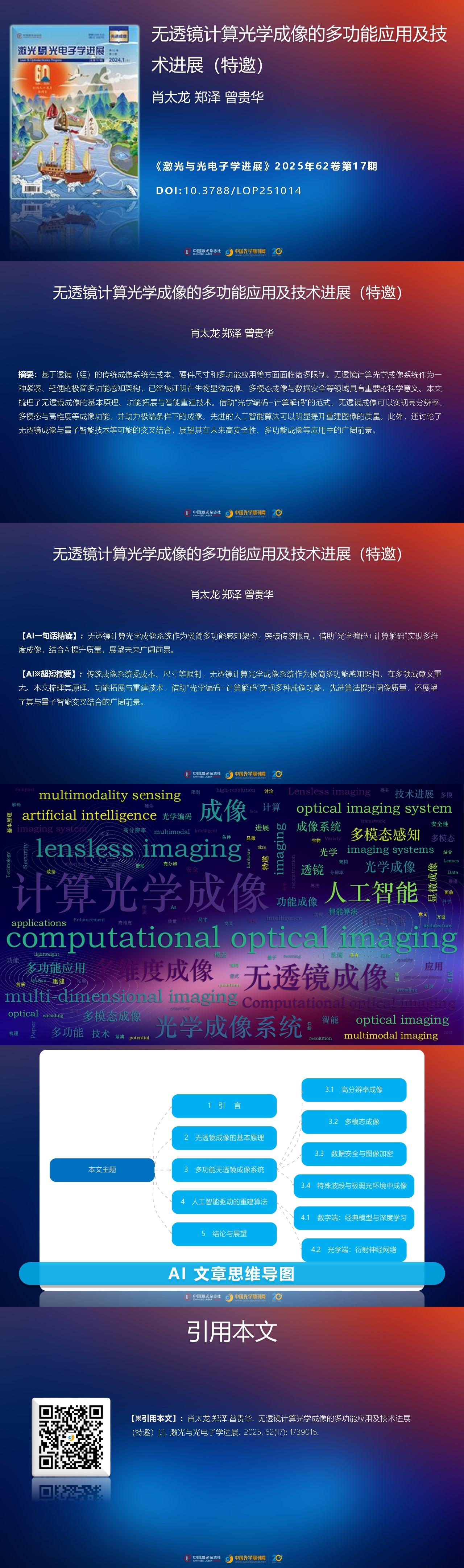 Tailong Xiao, Ze Zheng, Guihua Zeng. Multifunctional Applications and Technological Progresses of Lensless Computational Optical Imaging (Invited)[J]. Laser & Optoelectronics Progress, 2025, 62(17): 1739016