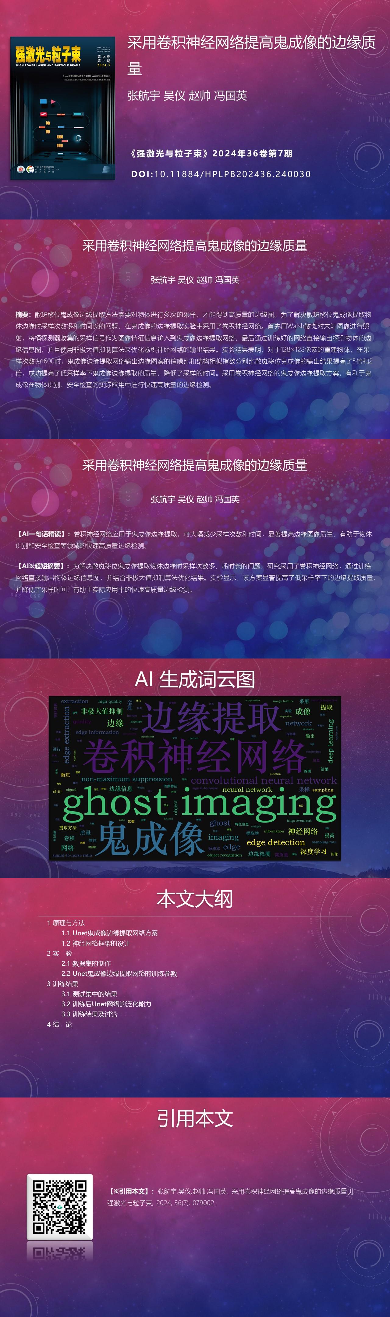 Hangyu Zhang, Yi Wu, Shuai Zhao, Guoying Feng. Edge quality improvement of ghost imaging based on convolutional neural network[J]. High Power Laser and Particle Beams, 2024, 36(7): 079002
