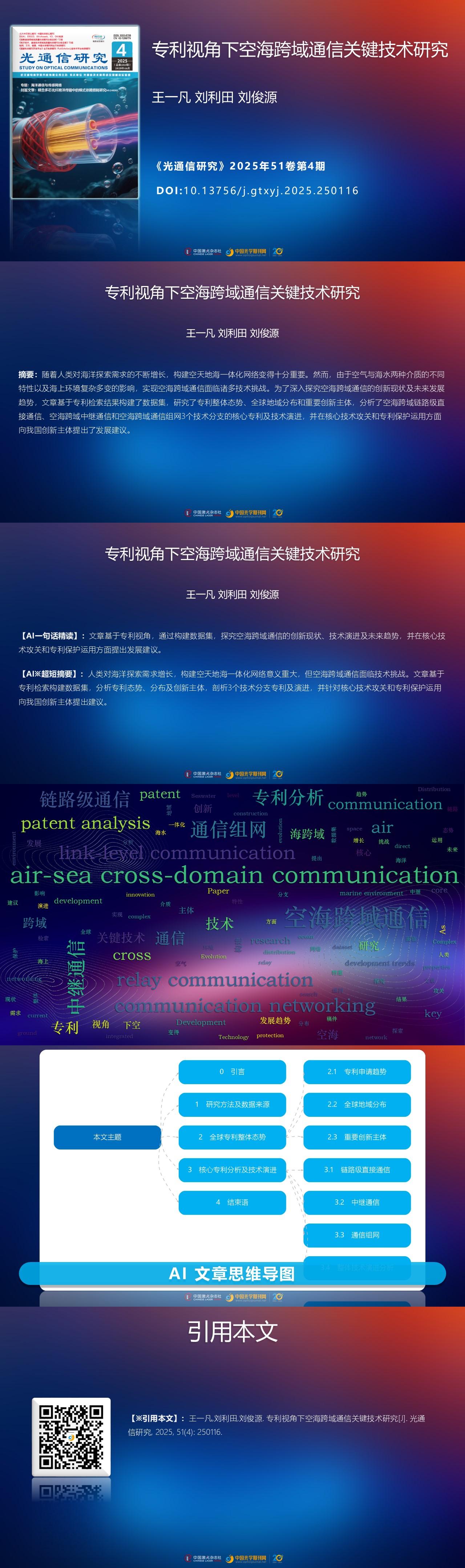 Yifan WANG, Litian LIU, Junyuan LIU. Research on Key Technologies of Air-sea Cross-domain Communication from a Patent Perspective[J]. Study On Optical Communications, 2025, 51(4): 250116