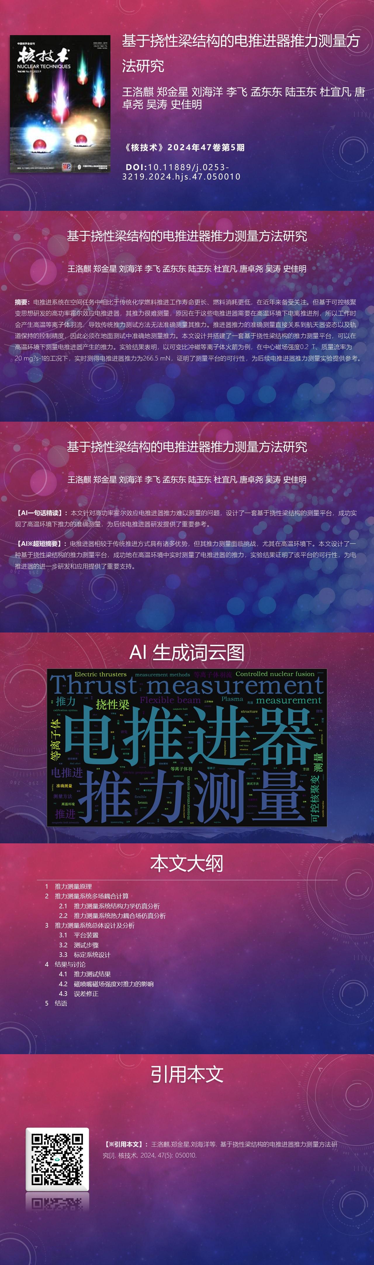 Luoqi WANG, Jinxing ZHENG, Haiyang LIU, Fei LI, Dongdong MENG, Yudong LU, Yifan DU, Zhuoyao TANG, Tao WU, Jiaming SHI. Thrust measurement methods for electric propulsion based on flexible beam structure[J]. NUCLEAR TECHNIQUES, 2024, 47(5): 050010
