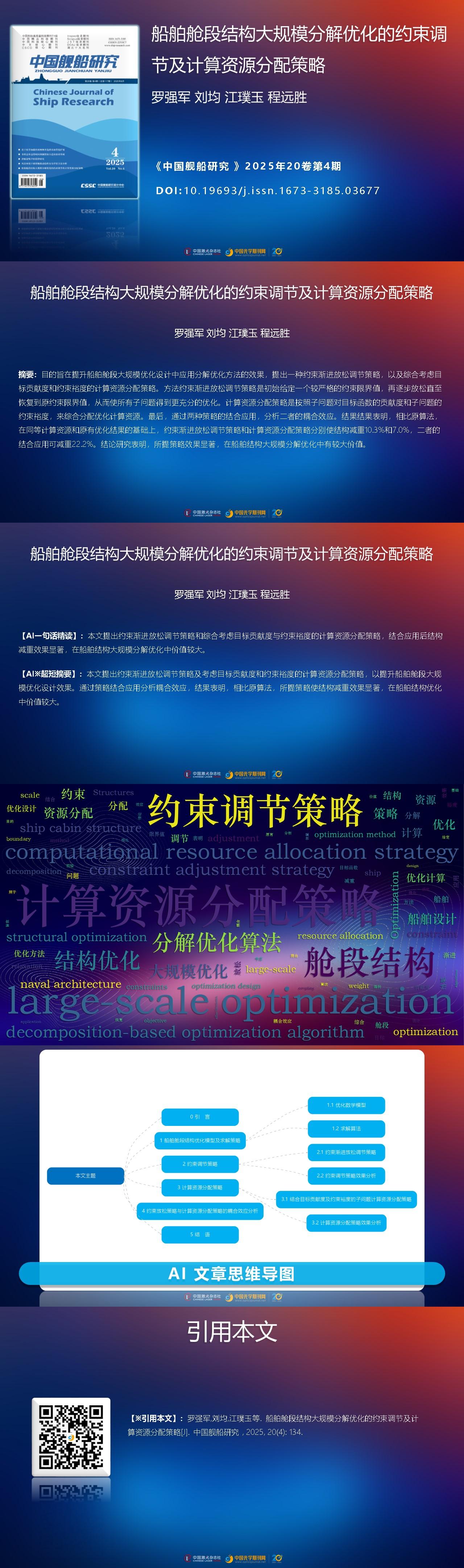 Qiangjun LUO, Jun LIU, Puyu JIANG, Yuansheng CHENG. Constraint adjustment and computational resource allocation strategies for decomposition-based large-scale optimization of ship cabin structures[J]. Chinese Journal of Ship Research, 2025, 20(4): 134