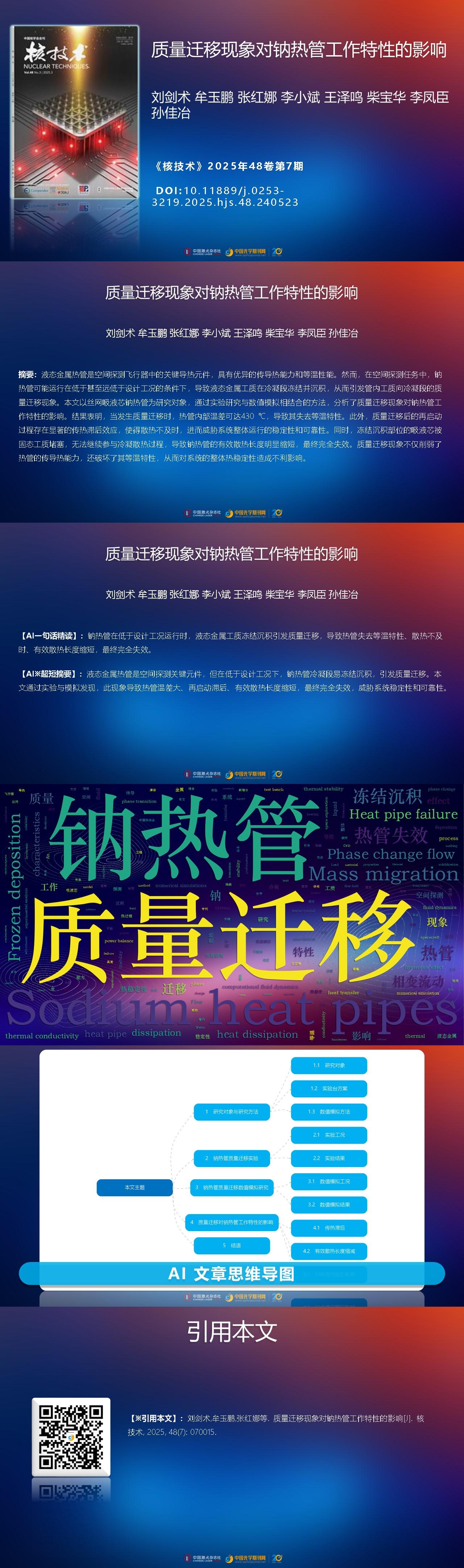 Jianshu LIU, Yupeng MOU, Hongna ZHANG, Xiaobin LI, Zeming WANG, Baohua CHAI, Fengchen LI, Jiaye SUN. Effect of mass migration on the working characteristics of sodium heat pipes[J]. NUCLEAR TECHNIQUES, 2025, 48(7): 070015