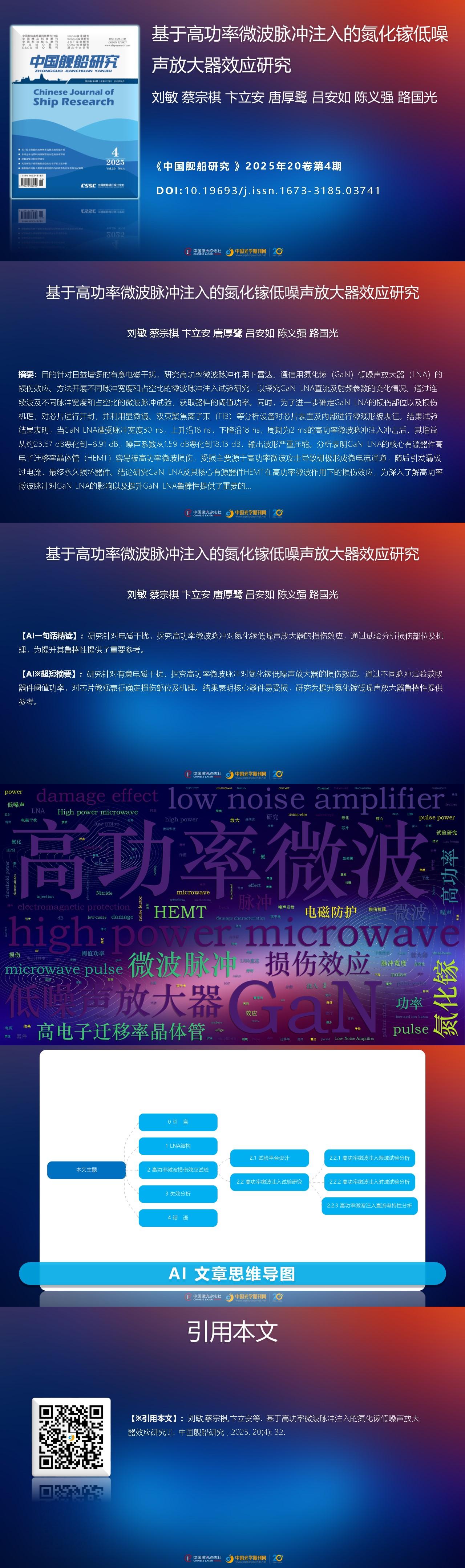 Min LIU, Zongqi CAI, Li'an BIAN, Houlu TANG, Anru LÜ, Yiqiang CHEN, Guoguang LU. Study on the effect of gallium nitride low noise amplifier based on high power microwave pulse injection[J]. Chinese Journal of Ship Research, 2025, 20(4): 32