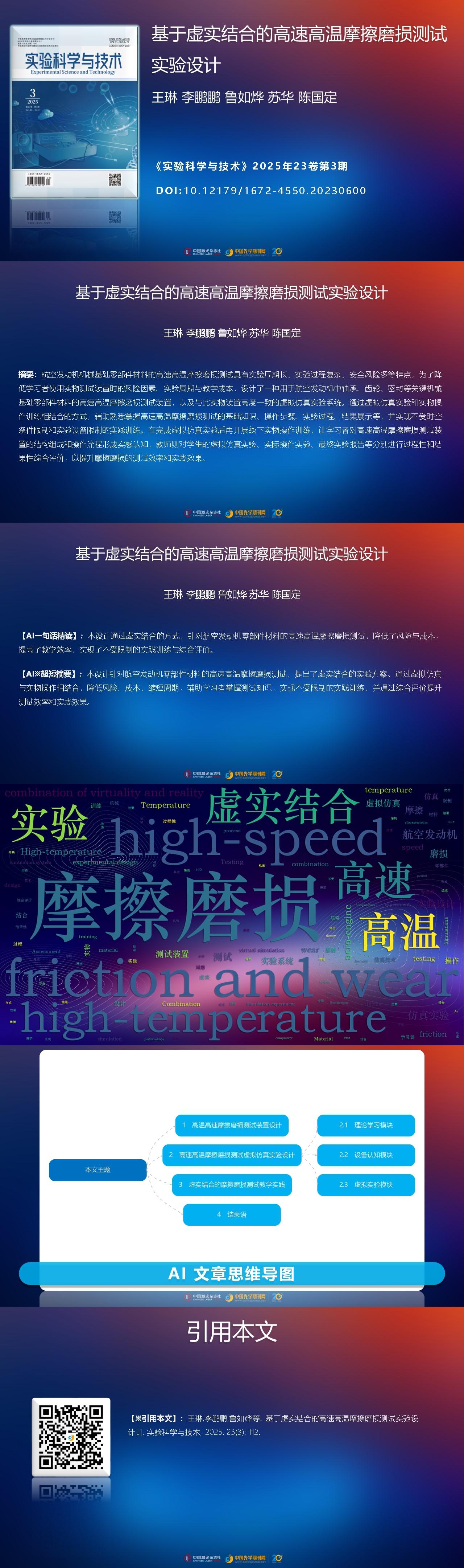 Lin WANG, Pengpeng LI, Ruye LU, Hua SU, Guoding CHEN. Experimental Design of Friction and Wear under the High-Speed and High-Temperature Conditions Based on the Combination of Virtuality and Reality[J]. Experiment Science and Technology, 2025, 23(3): 112