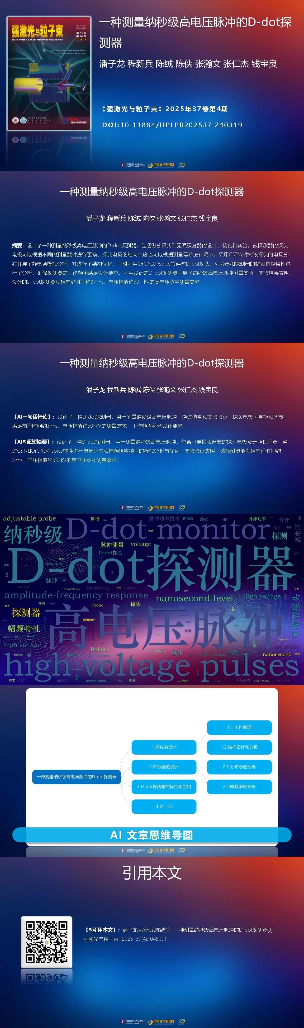 Zilong Pan, Xinbing Cheng, Rong Chen, Xia Chen, Hanwen Zhang, Renjie Zhang, Baoliang Qian. A D-dot monitor for measuring nanosecond high voltage pulses[J]. High Power Laser and Particle Beams, 2025, 37(4): 045001