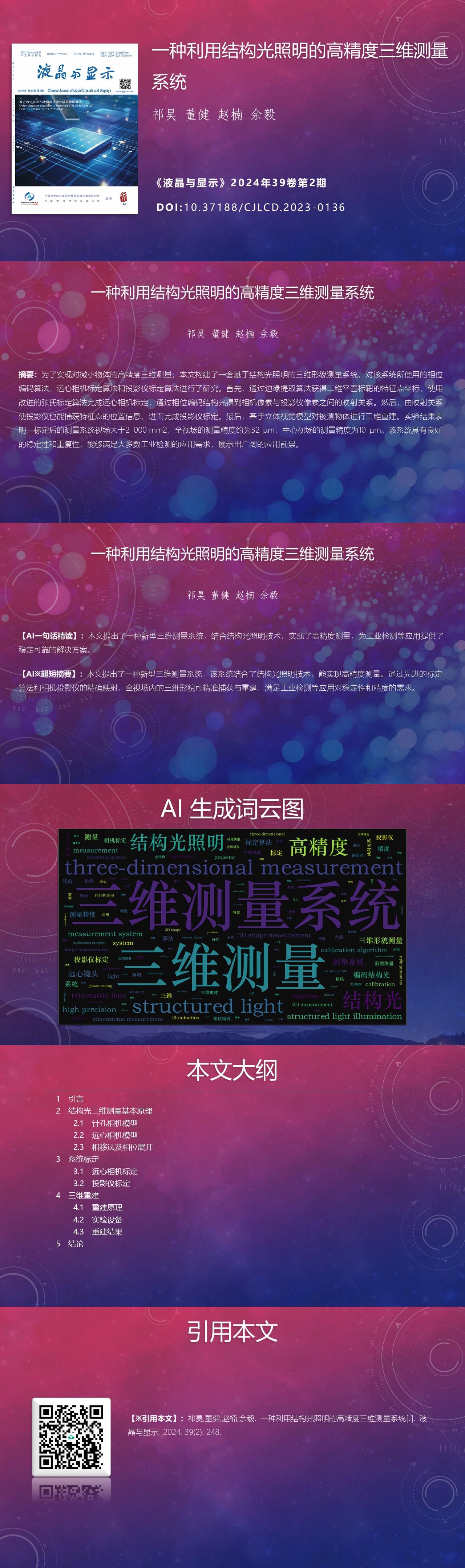 Hao QI, Jian DONG, Nan ZHAO, Yi YU. High-resolution three-dimensional measurement system based on structured light illumination[J]. Chinese Journal of Liquid Crystals and Displays, 2024, 39(2): 248