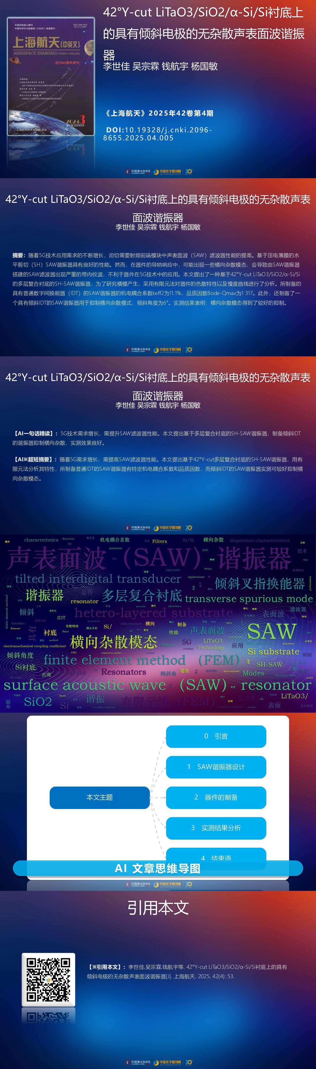 Shijia LI, Zonglin WU, Hangyu QIAN, Guomin YANG. Spurious-free SAW Resonators on 42°Y-cut LiTaO3/SiO2/α-Si/Si Substrate with Tilted IDT[J]. AEROSPACE SHANGHAI, 2025, 42(4): 53