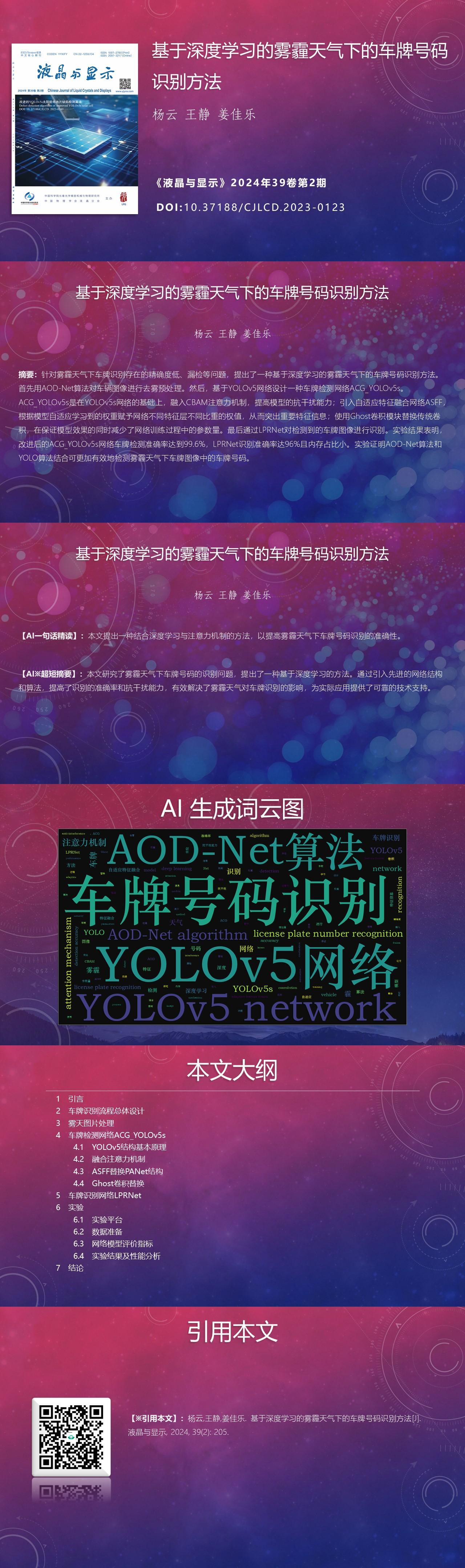 Yun YANG, Jing WANG, Jiale JIANG. Method of vehicle license plate recognition in haze weather based on deep learning[J]. Chinese Journal of Liquid Crystals and Displays, 2024, 39(2): 205