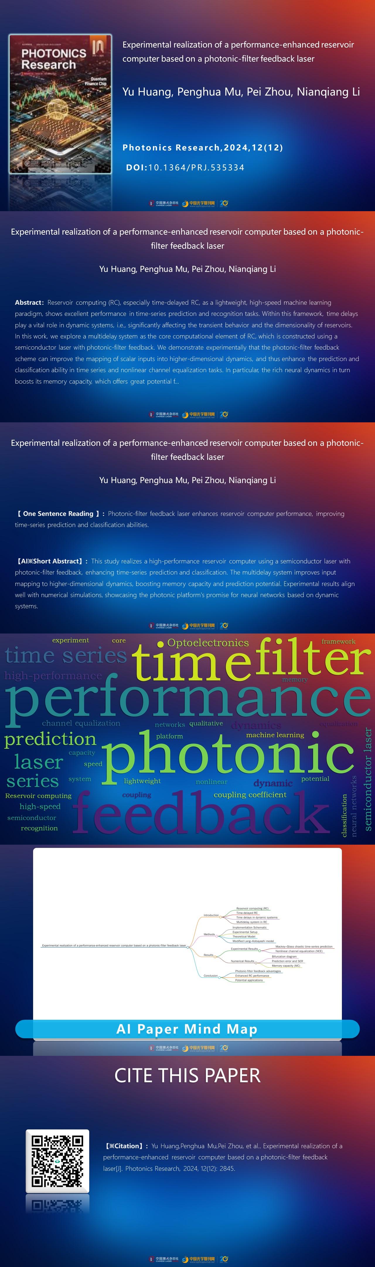 【AIGC One Sentence Reading】:Photonic-filter feedback laser enhances reservoir computer performance, improving time-series prediction and classification abilities.