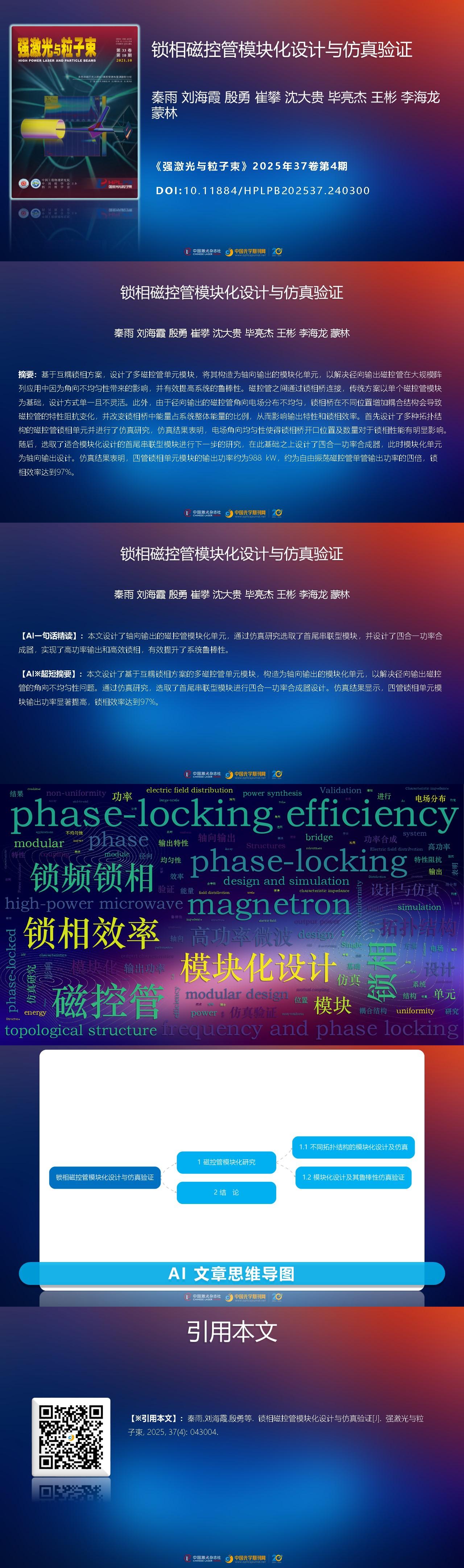 Yu Qin, Haixia Liu, Yong Yin, Pan Cui, Dagui Shen, Liangjie Bi, Bin Wang, Hailong Li, Lin Meng. Modular design and simulation validation of phase-locked magnetrons[J]. High Power Laser and Particle Beams, 2025, 37(4): 043004