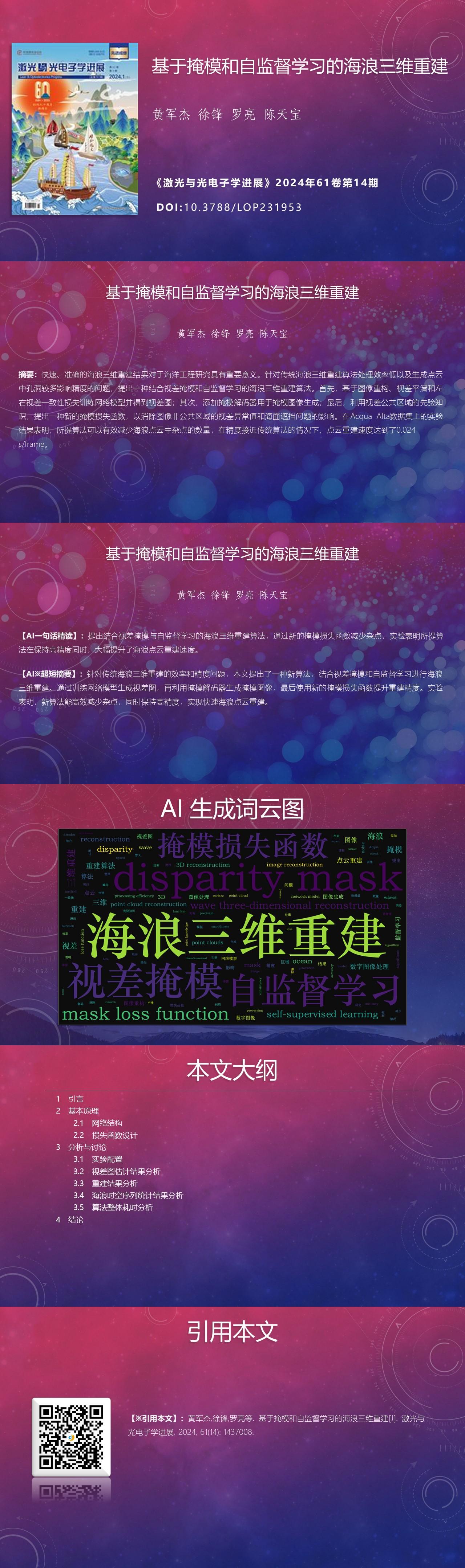 Junjie Huang, Feng Xu, Liang Luo, Tianbao Chen. Three-Dimensional Reconstruction of Ocean Waves Based on Mask and Self-Supervised Learning[J]. Laser & Optoelectronics Progress, 2024, 61(14): 1437008