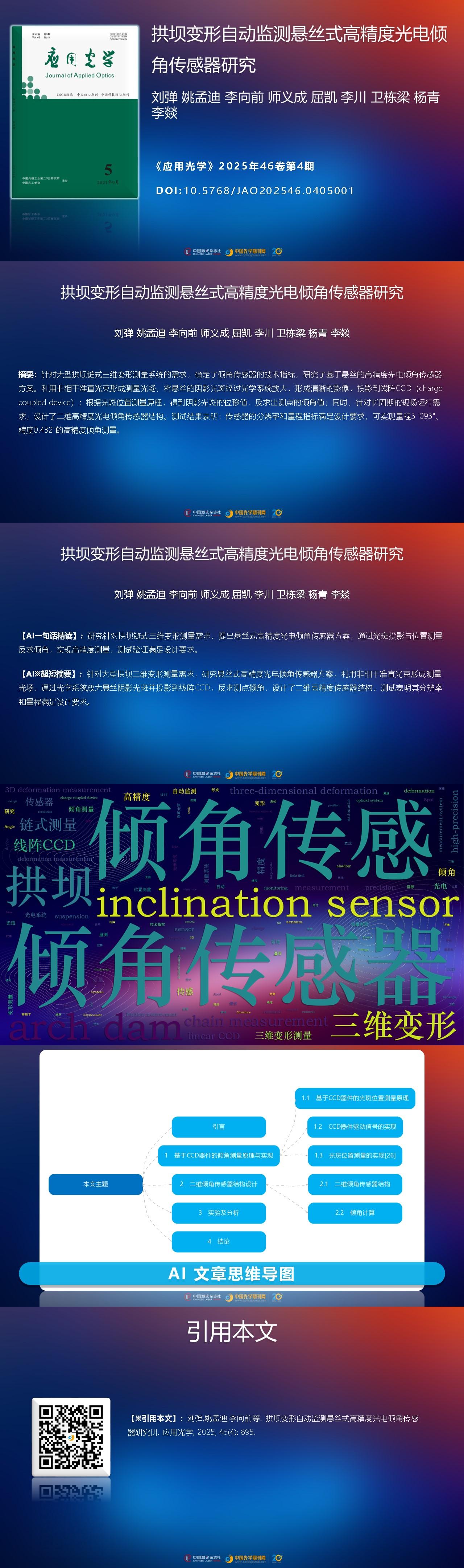Dan LIU, Mengdi YAO, Xiangqian LI, Yicheng SHI, Kai QU, Chuan LI, Dongliang WEI, Qing YANG, Yi LI. Research on suspension wire type high-precision photoelectric inclination sensor for automatic monitoring of arch dam deformation[J]. Journal of Applied Optics, 2025, 46(4): 895