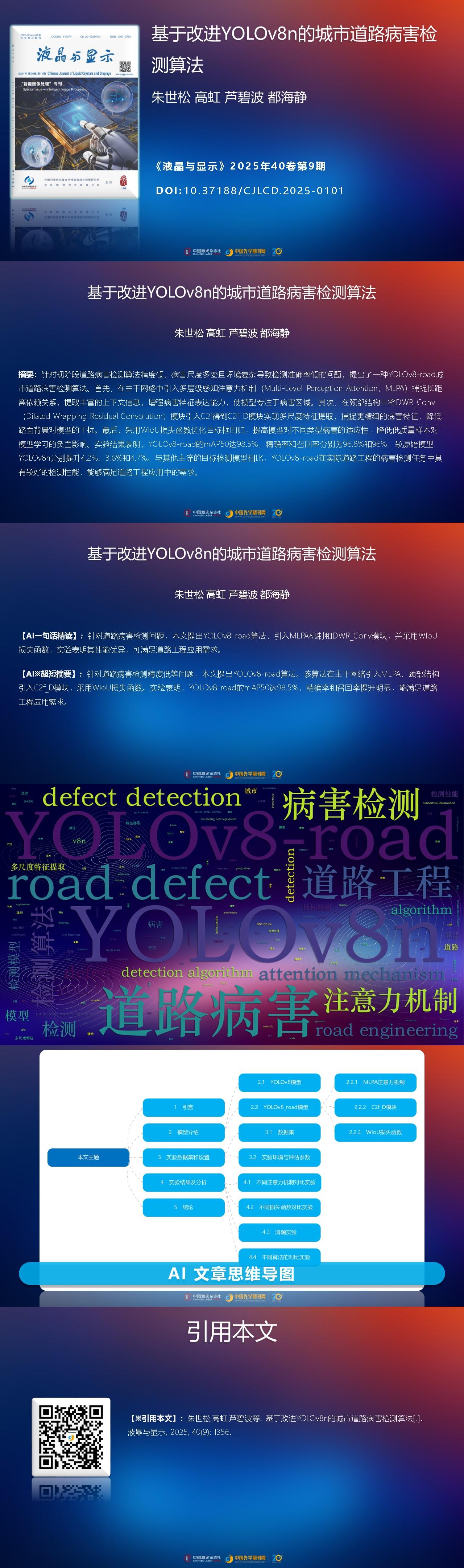 Shisong ZHU, Hong GAO, Bibo LU, Haijing DU. Urban road defect detection algorithm based on improved YOLOv8n[J]. Chinese Journal of Liquid Crystals and Displays, 2025, 40(9): 1356