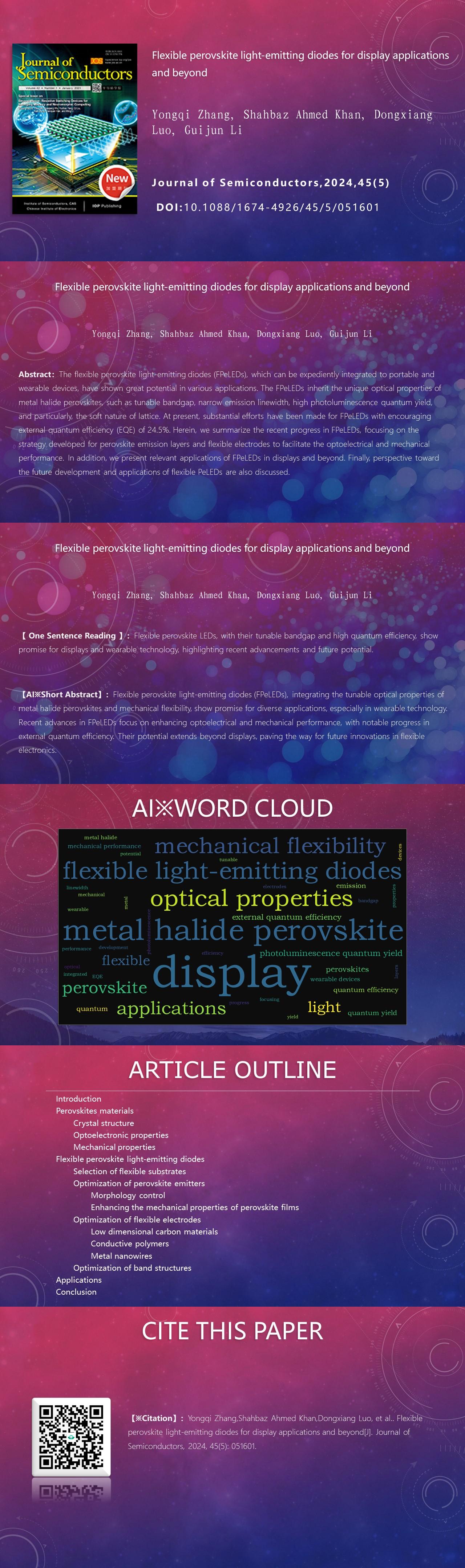 Yongqi Zhang, Shahbaz Ahmed Khan, Dongxiang Luo, Guijun Li. Flexible perovskite light-emitting diodes for display applications and beyond[J]. Journal of Semiconductors, 2024, 45(5): 051601