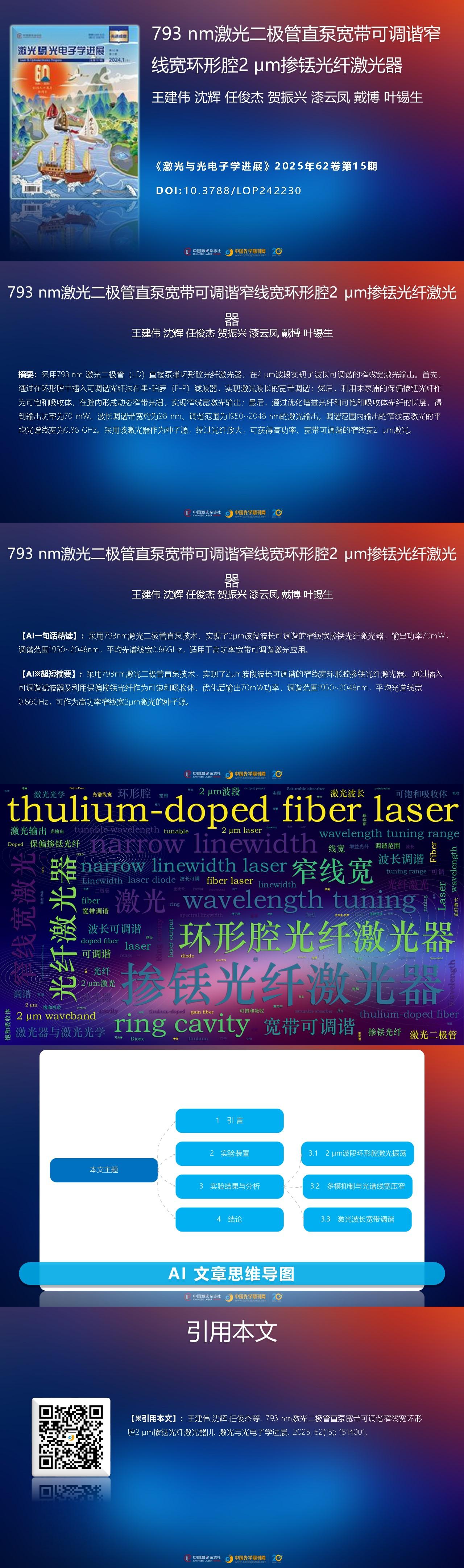 Jianwei Wang, Hui Shen, Junjie Ren, Zhenxing He, Yunfeng Qi, Bo Dai, Xisheng Ye. 2 μm Ring Cavity Thulium-Doped Fiber Laser Directly Pumped by 793 nm Laser Diode with Wide Tunable Wavelength and Narrow Linewidth[J]. Laser & Optoelectronics Progress, 2025, 62(15): 1514001