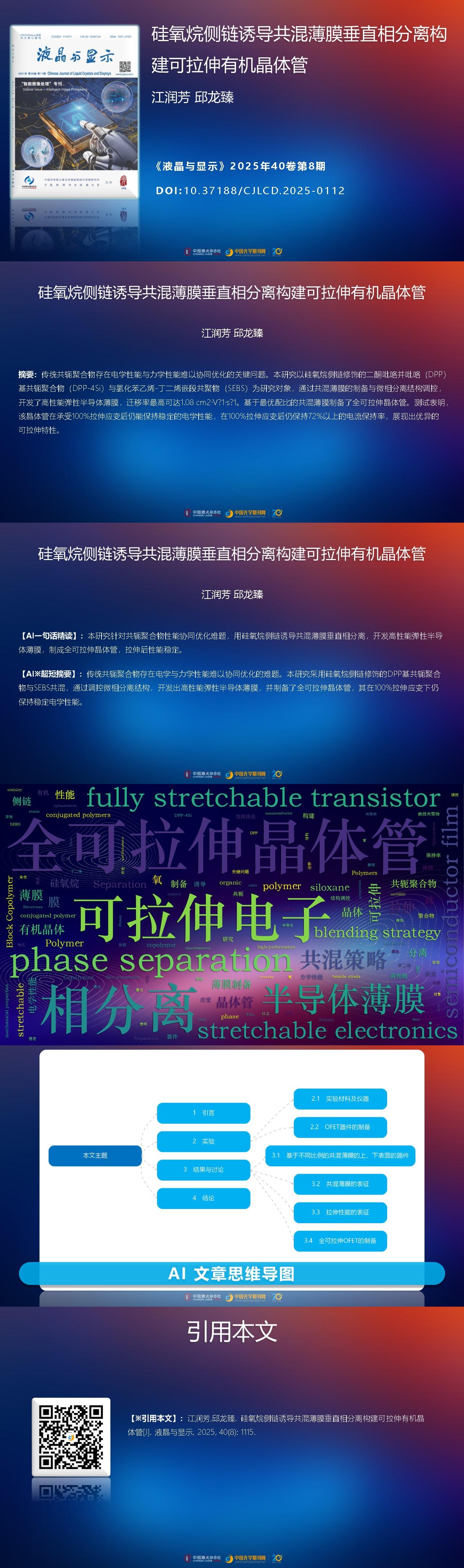 Runfang JIANG, Longzhen QIU. Siloxane-side-chain-induced vertical phase separation in polymer blends for stretchable organic transistors[J]. Chinese Journal of Liquid Crystals and Displays, 2025, 40(8): 1115