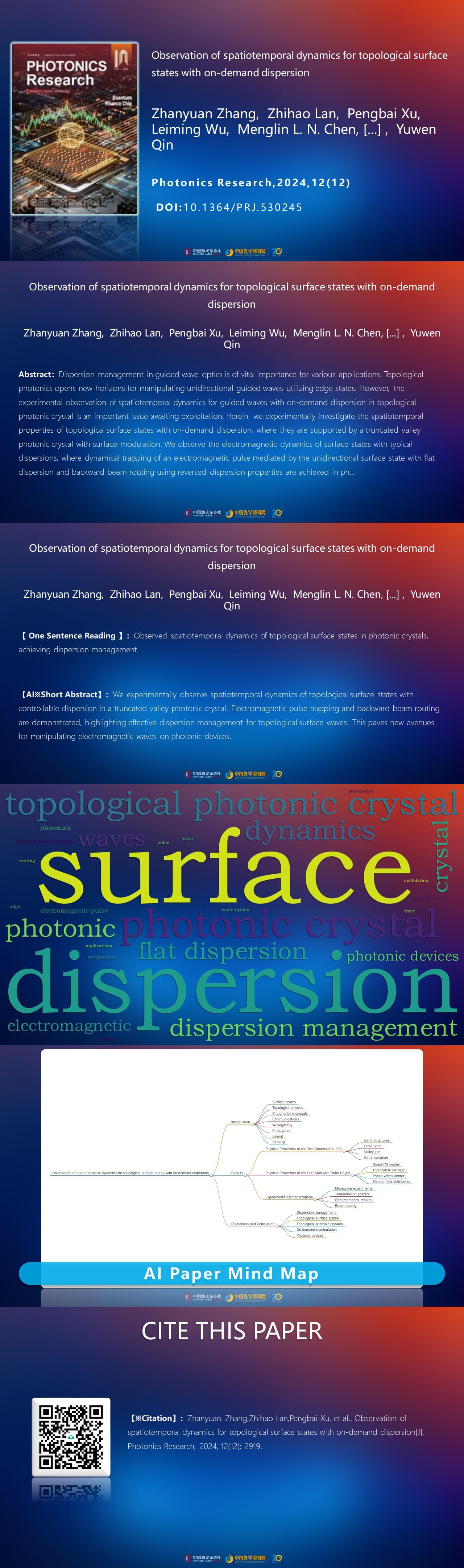 【AIGC One Sentence Reading】:Observed spatiotemporal dynamics of topological surface states in photonic crystals, achieving dispersion management.