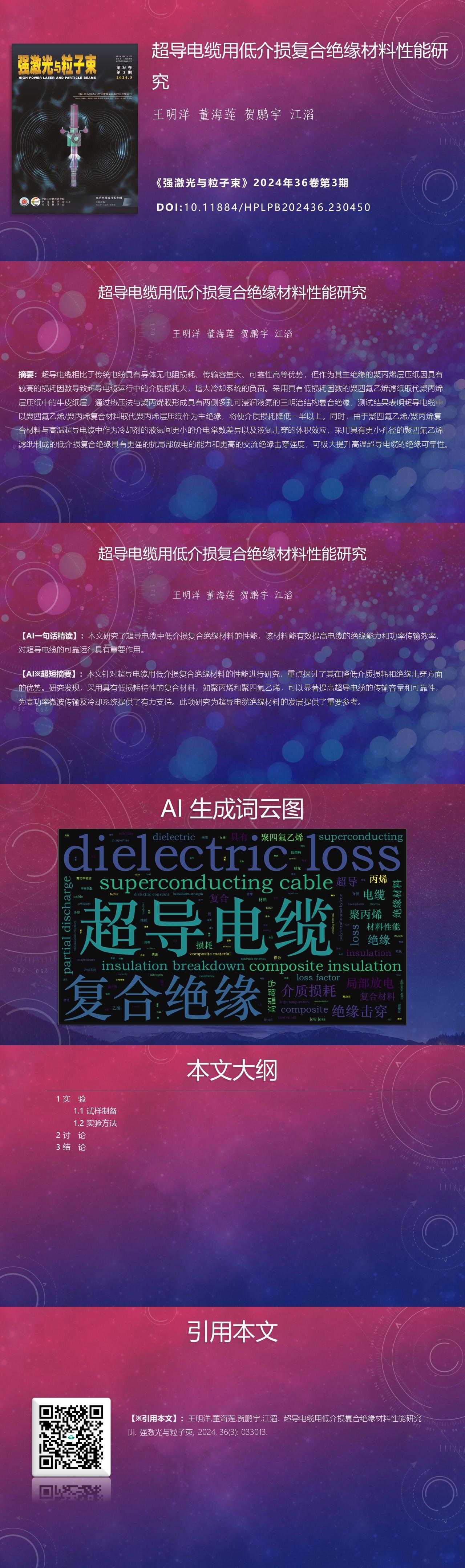 Mingyang Wang, Hailian Dong, Pengyu He, Tao Jiang. Study on the properties of low dielectric loss composite insulating materials for superconducting cables[J]. High Power Laser and Particle Beams, 2024, 36(3): 033013
