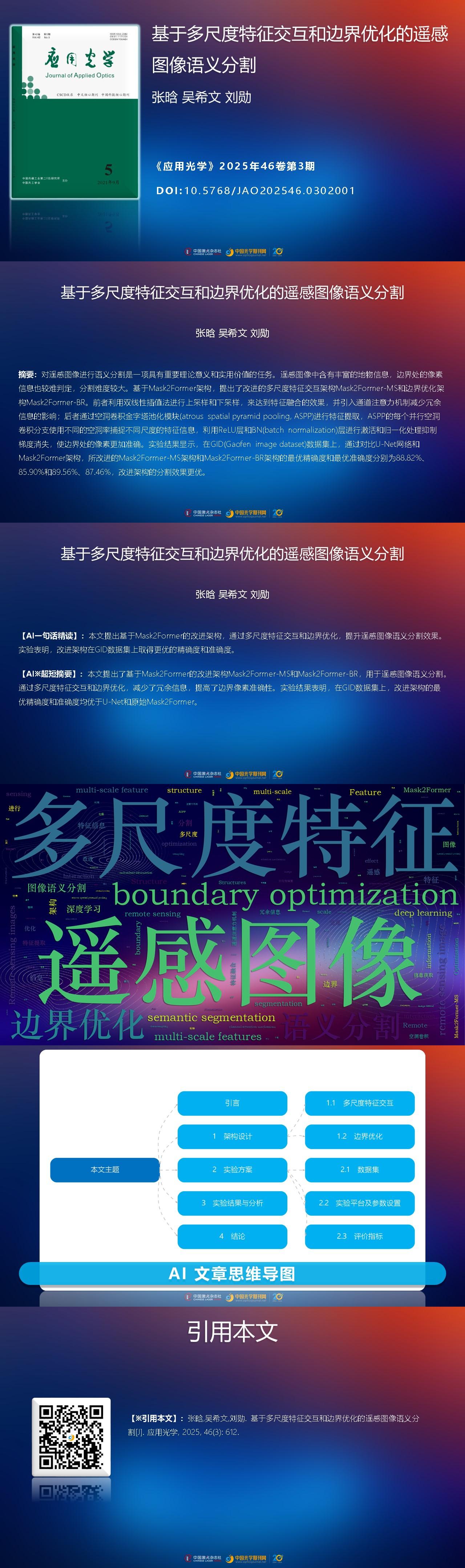 Han ZHANG, Alex Hay-Man NG, Xun LIU. Semantic segmentation of remote sensing images based on multi-scale feature interaction and boundary optimization[J]. Journal of Applied Optics, 2025, 46(3): 612