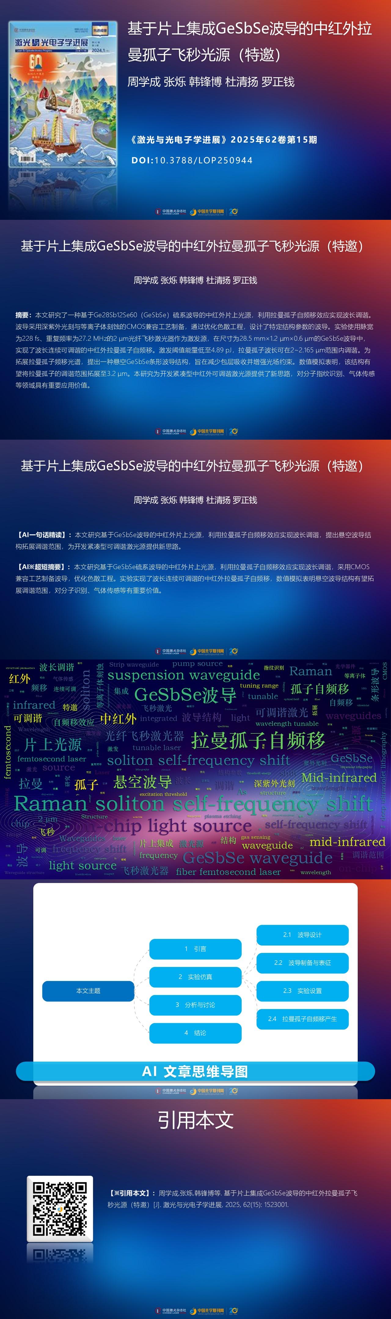 Xuecheng Zhou, Shuo Zhang, Fengbo Han, Qingyang Du, Zhengqian Luo. Mid-Infrared Raman Soliton Femtosecond Light Source Based on On-Chip Integrated GeSbSe Waveguide (Invited)[J]. Laser & Optoelectronics Progress, 2025, 62(15): 1523001