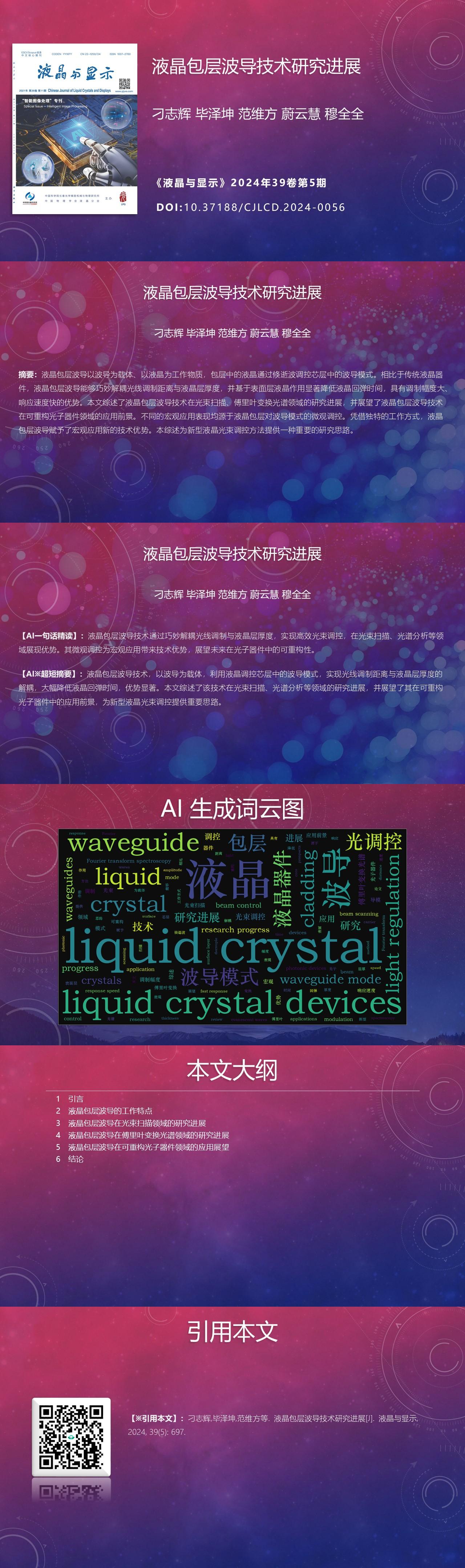 Zhihui DIAO, Zekun BI, Weifang FAN, Yunhui YU, Quanquan MU. Research progress on liquid crystal cladding waveguide technology[J]. Chinese Journal of Liquid Crystals and Displays, 2024, 39(5): 697