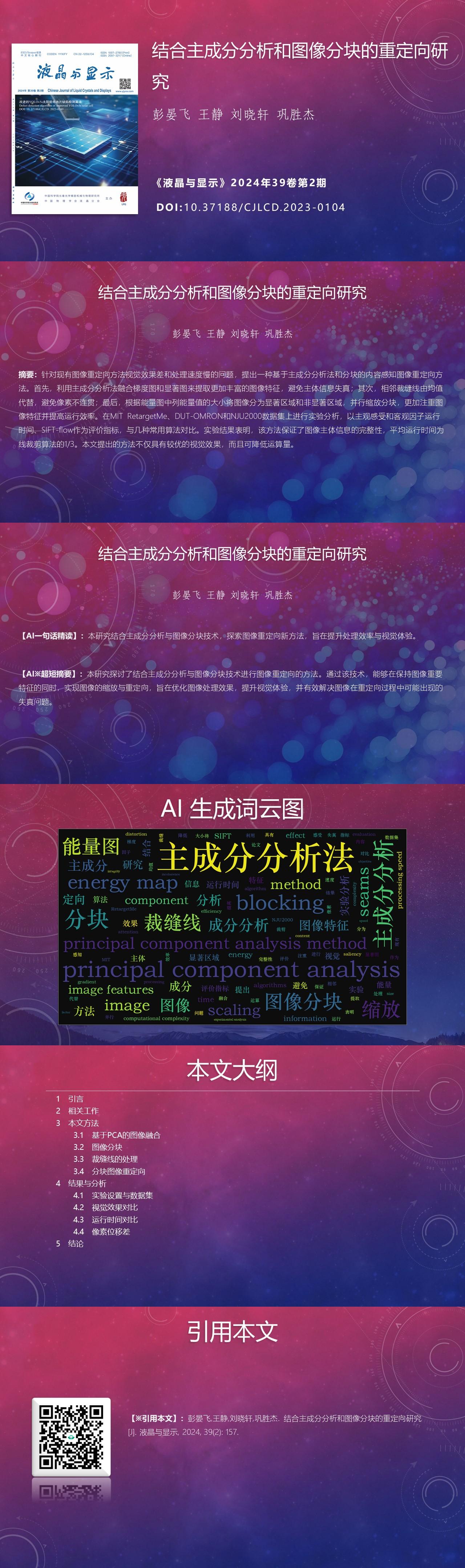 Yanfei PENG, Jing WANG, Xiaoxuan LIU, Shengjie GONG. Retargeting method based on principal component analysis and image blocking[J]. Chinese Journal of Liquid Crystals and Displays, 2024, 39(2): 157