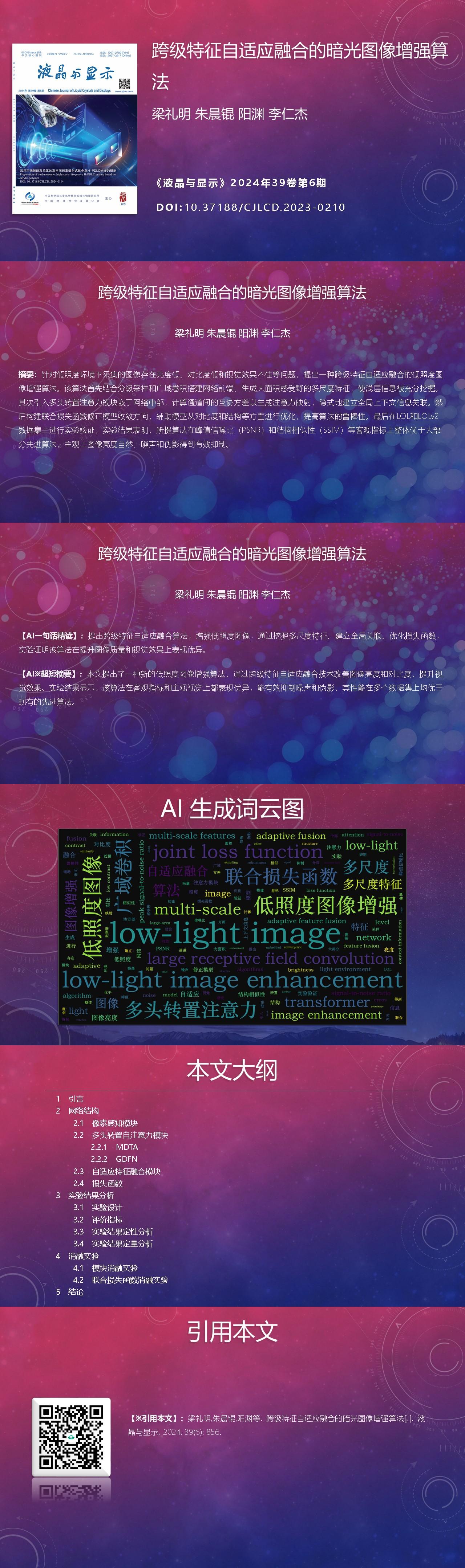 Liming LIANG, Chenkun ZHU, Yuan YANG, Renjie LI. Cross-level feature adaptive fusion network for low-light image enhancement[J]. Chinese Journal of Liquid Crystals and Displays, 2024, 39(6): 856
