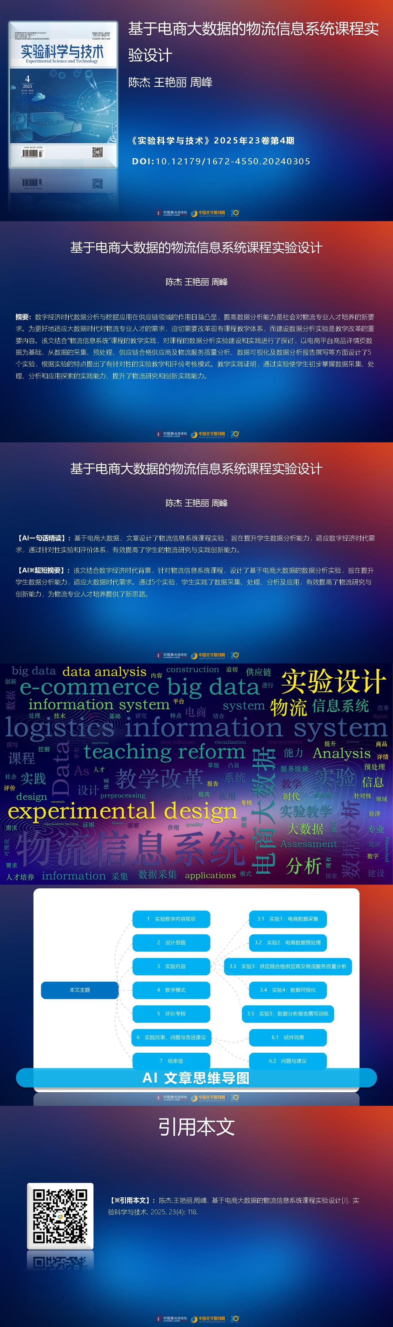 Jie CHEN, Yanli WANG, Feng ZHOU. Experimental Design of the Logistics Information System Course Based on E-Commerce Big Data[J]. Experiment Science and Technology, 2025, 23(4): 118