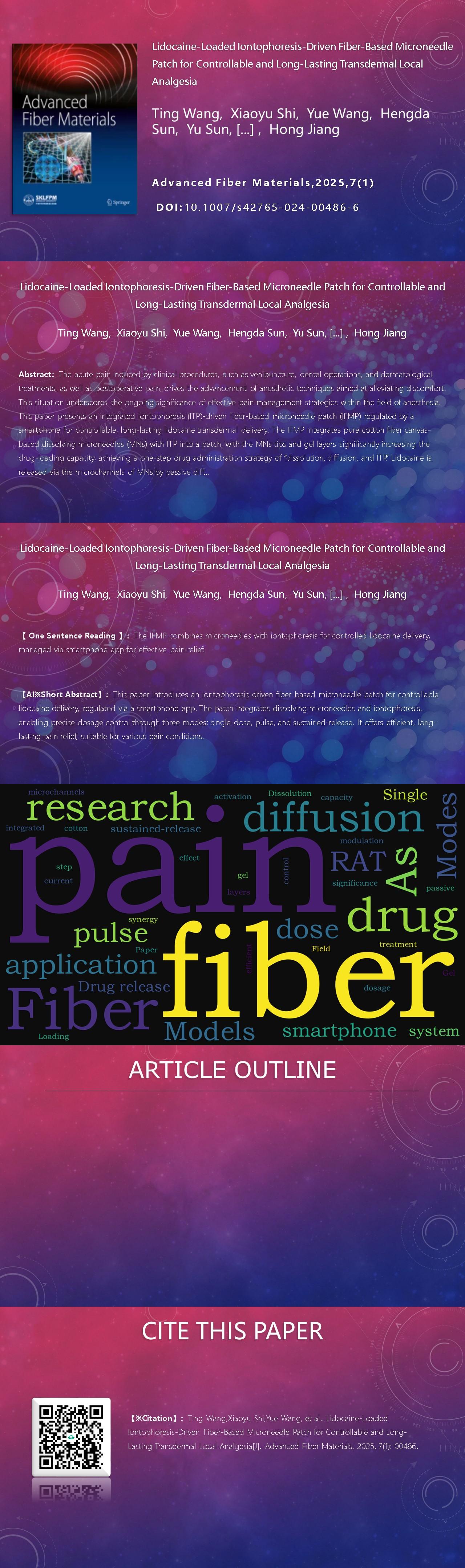 Ting Wang, Xiaoyu Shi, Yue Wang, Hengda Sun, Yu Sun, Gang Wang, Hong Jiang. Lidocaine-Loaded Iontophoresis-Driven Fiber-Based Microneedle Patch for Controllable and Long-Lasting Transdermal Local Analgesia[J]. Advanced Fiber Materials, 2025, 7(1): 00486