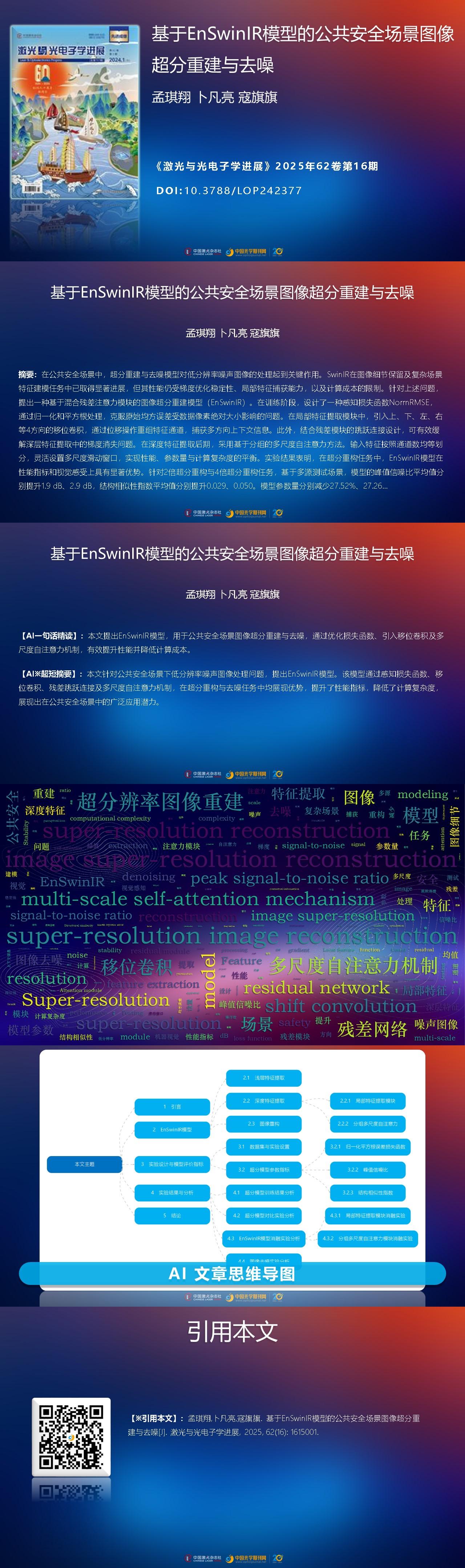 Qixiang Meng, Fanliang Bu, Qiqi Kou. Super-Resolution Reconstruction and Denoising Tasks for Public Safety Scene Images Using the EnSwinIR Model[J]. Laser & Optoelectronics Progress, 2025, 62(16): 1615001