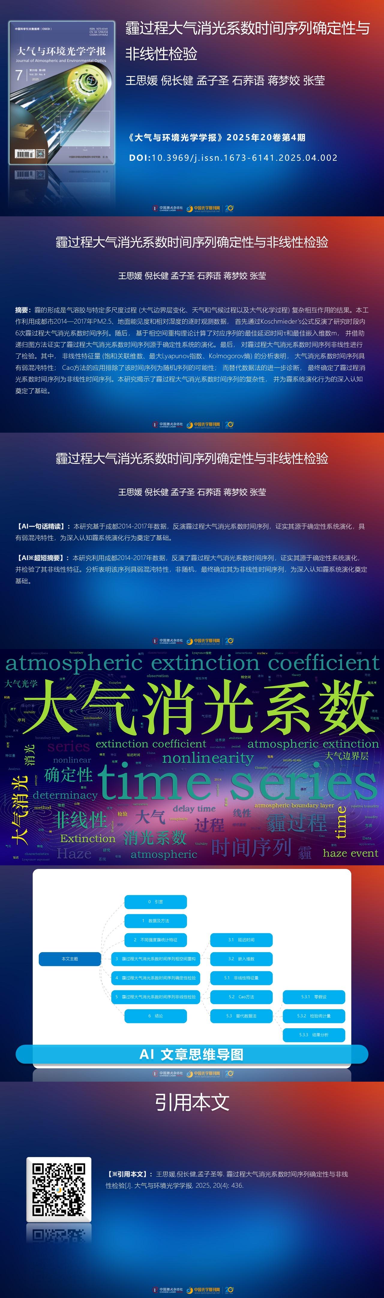 Siyuan WANG, Changjian NI, Zisheng MENG, Qiaoyu SHI, Mengjiao JIANG, Ying ZHANG. Deterministic and nonlinear tests of time series of atmospheric extinction coefficient in haze events[J]. Journal of Atmospheric and Environmental Optics, 2025, 20(4): 436