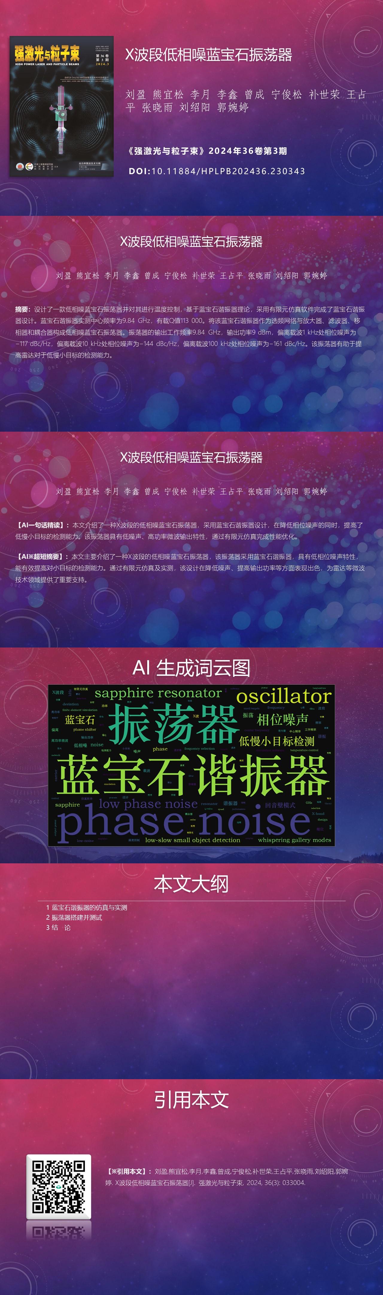 Ying Liu, Yisong Xiong, Yue Li, Xin Li, Cheng Zeng, Junsong Ning, Shirong Bu, Zhanping Wang, Xiaoyu Zhang, Shaoyang Liu, Wanting Guo. Design of X-band low phase noise sapphire oscillator[J]. High Power Laser and Particle Beams, 2024, 36(3): 033004