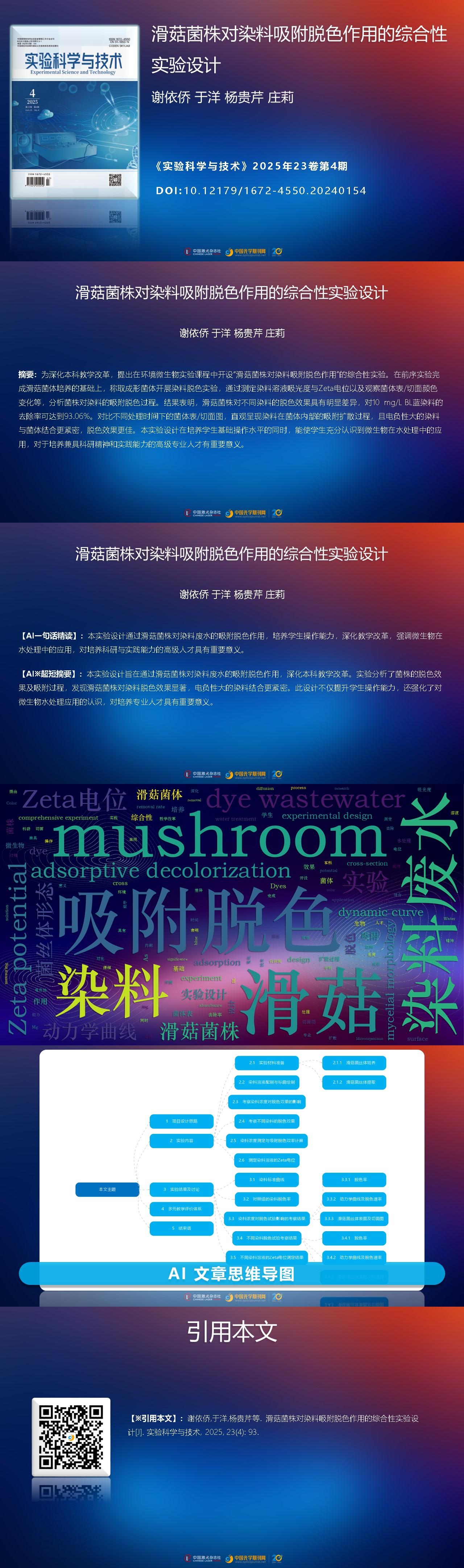 Yiqiao XIE, Yang YU, Guiqin YANG, Li ZHUANG. Comprehensive Experimental Design of Dye Adsorption and Decolorization by Nameko Mushroom Strains[J]. Experiment Science and Technology, 2025, 23(4): 93