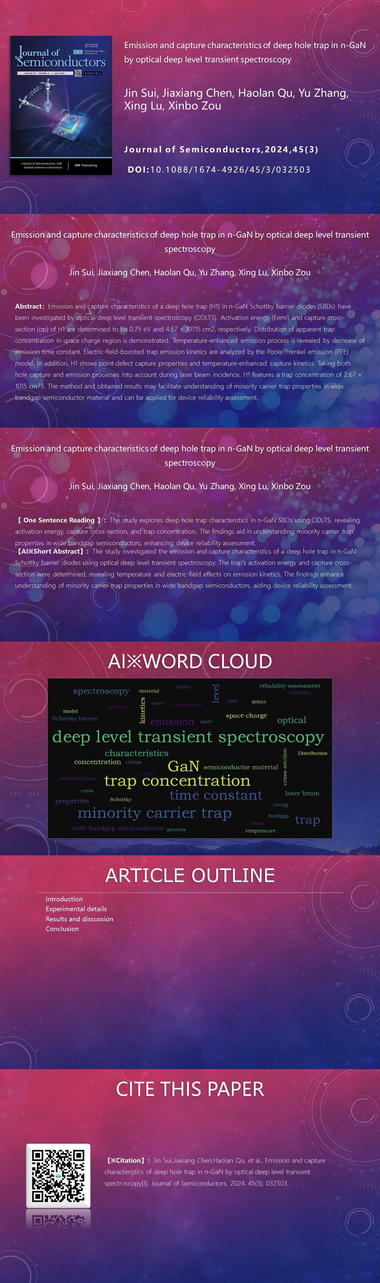 Jin Sui, Jiaxiang Chen, Haolan Qu, Yu Zhang, Xing Lu, Xinbo Zou. Emission and capture characteristics of deep hole trap in n-GaN by optical deep level transient spectroscopy[J]. Journal of Semiconductors, 2024, 45(3): 032503