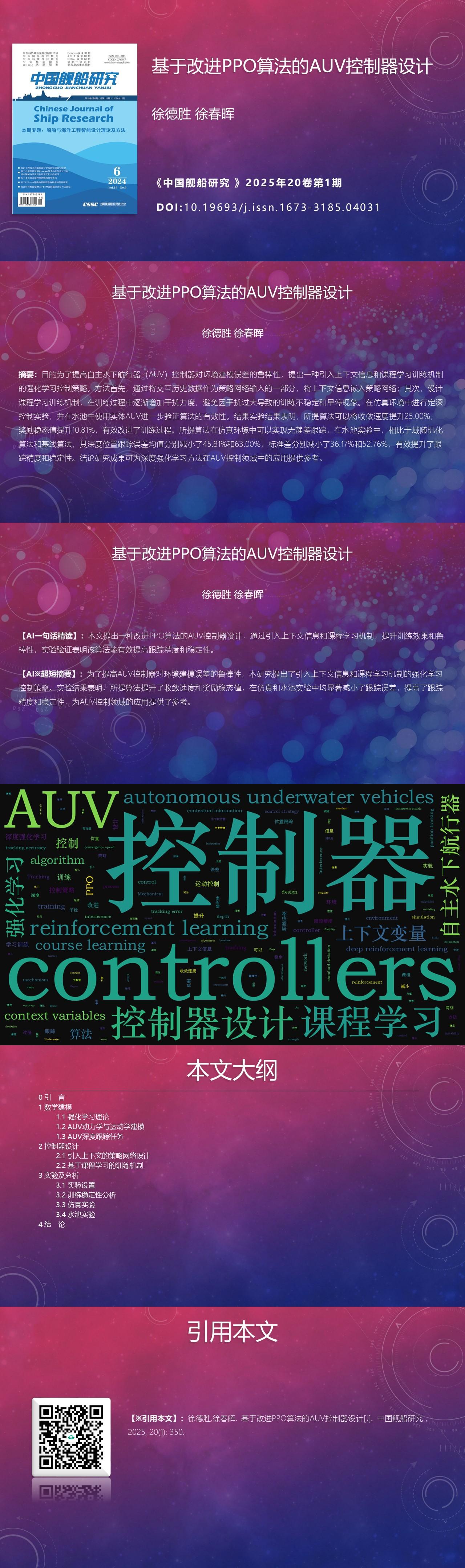 Desheng XU, Chunhui XU. Design of AUV controller based on improved PPO algorithm[J]. Chinese Journal of Ship Research, 2025, 20(1): 350
