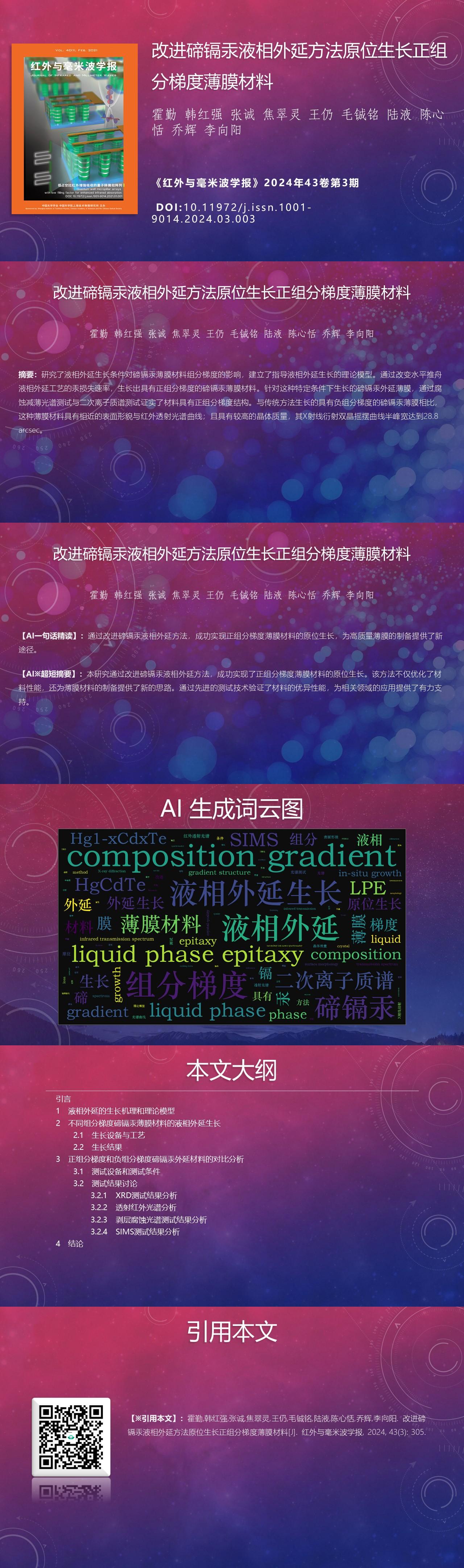 Qin HUO, Hong-Qiang HAN, Cheng ZHANG, Cui-Ling JIAO, Reng WANG, Cheng-Ming MAO, Ye LU, Xin-Tian CHEN, Hui QIAO, Xiang-Yang LI. Improved liquid phase epitaxy method for in-situ growth of HgCdTe with positive composition gradient[J]. Journal of Infrared and Millimeter Waves, 2024, 43(3): 305