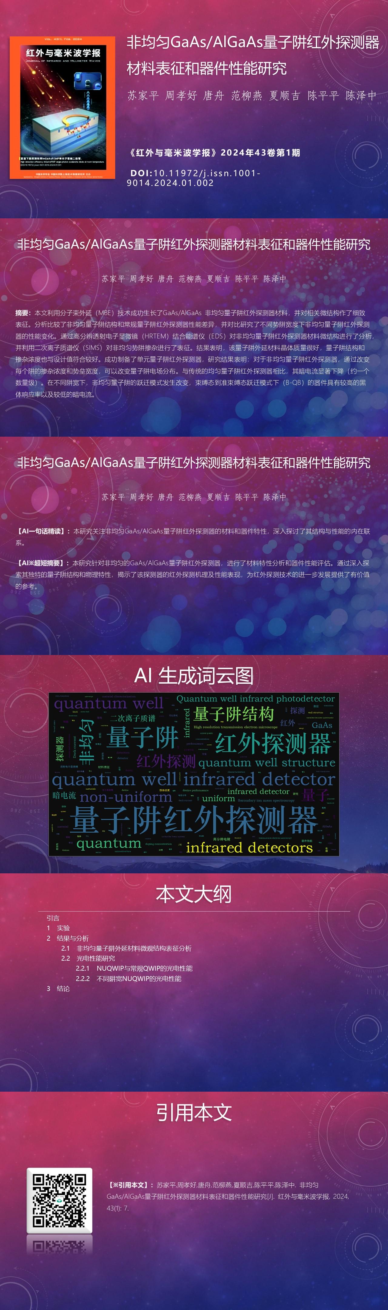Jia-Ping SU, Xiao-Hao ZHOU, Zhou TANG, Liu-Yan FAN, Shun-Ji XIA, Ping-Ping CHEN, Ze-Zhong CHEN. Study on material characterization and device performance of non-uniform GaAs/AlGaAs quantum well infrared detectors[J]. Journal of Infrared and Millimeter Waves, 2024, 43(1): 7