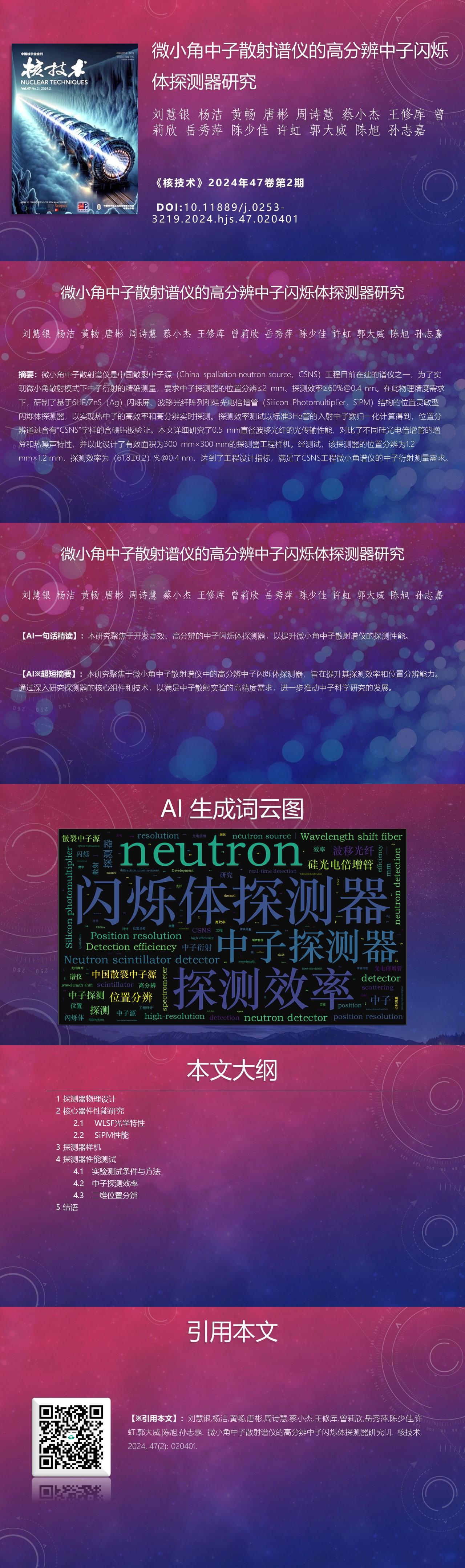 Huiyin LIU, Jie YANG, Chang HUANG, Bin TANG, Shihui ZHOU, Xiaojie CAI, Xiuku WANG, Lixin ZENG, Xiuping YUE, Shaojia CHEN, Hong XU, Dawei GUO, Xu CHEN, Zhijia SUN. Development of the high-resolution neutron scintillator detector for the very small-angle neutron scattering spectrometer[J]. NUCLEAR TECHNIQUES, 2024, 47(2): 020401