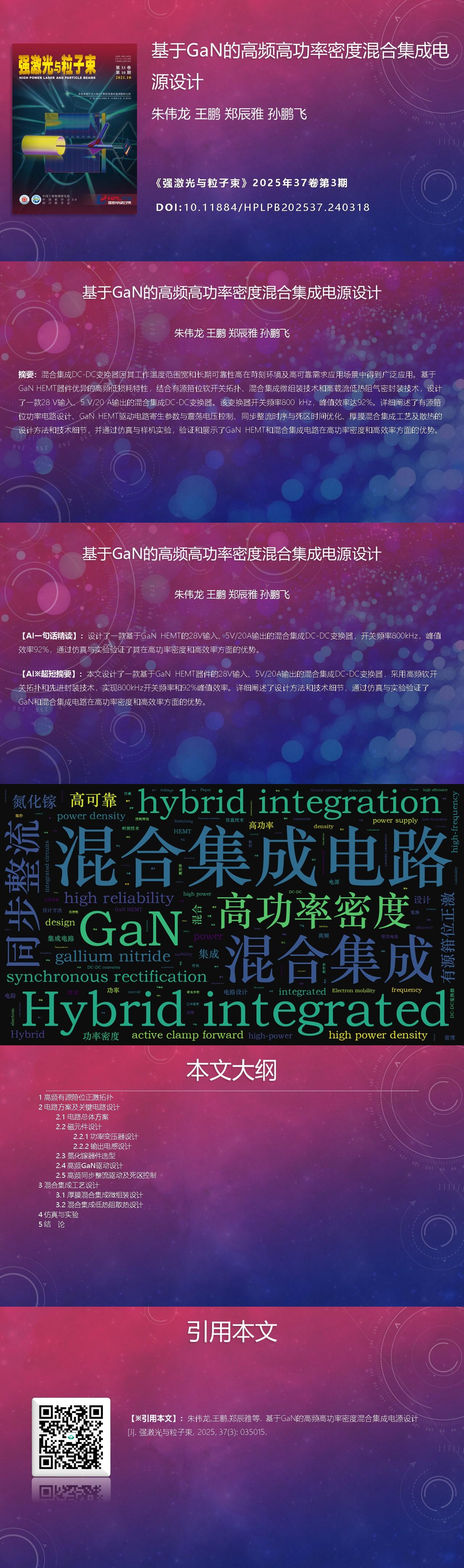 Weilong Zhu, Peng Wang, Chenya Zheng, Pengfei Sun. Design of high-frequency, high-power density hybrid integrated power supply based on GaN high electron mobility transistors[J]. High Power Laser and Particle Beams, 2025, 37(3): 035015