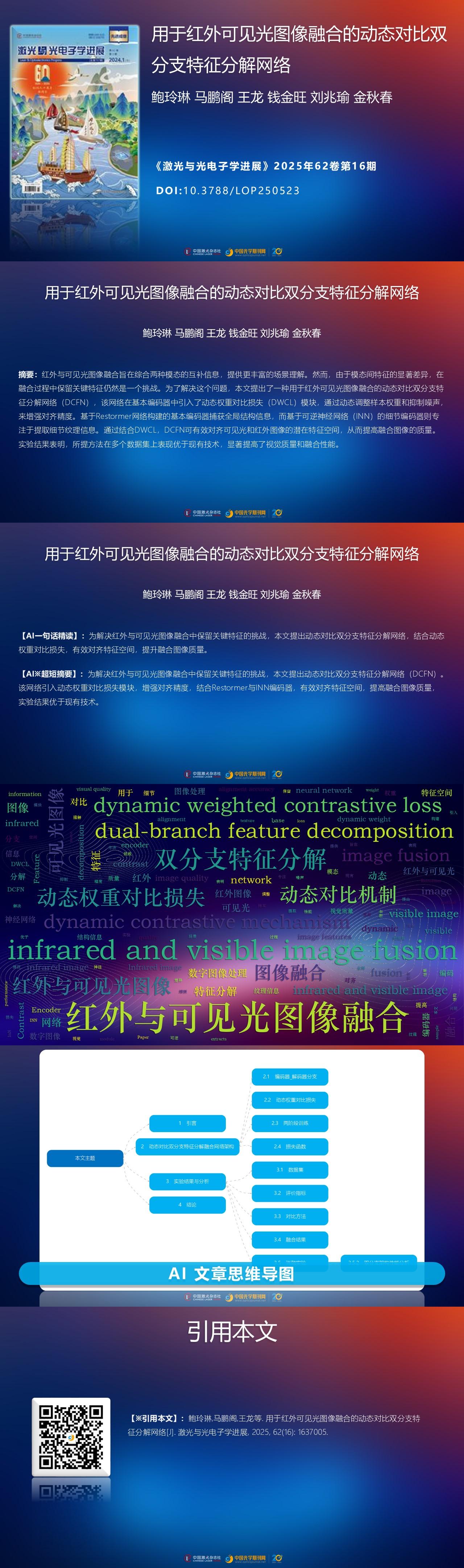 Linglin Bao, Pengge Ma, Long Wang, Jinwang Qian, Zhaoyu Liu, Qiuchun Jin. Dynamic Contrast Dual-Branch Feature Decomposition Network for Infrared-Visible Image Fusion[J]. Laser & Optoelectronics Progress, 2025, 62(16): 1637005