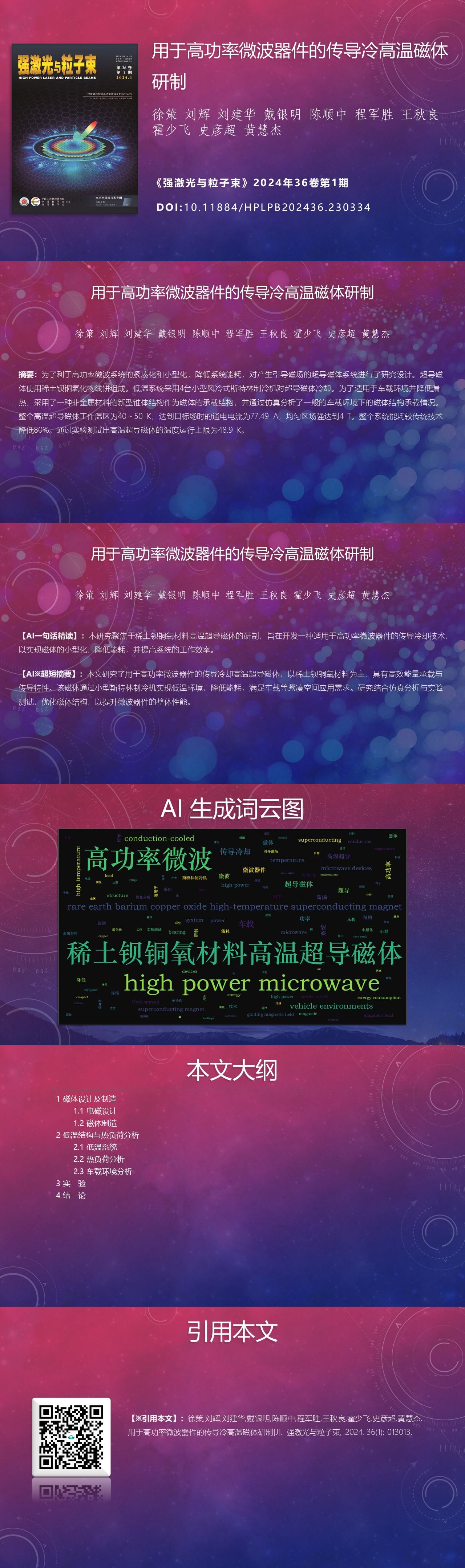 Ce Xu, Hui Liu, Jianhua Liu, Yinming Dai, Shunzhong Chen, Junsheng Cheng, Qiuliang Wang, Shaofei Huo, Yanchao Shi, Huijie Huang. Development of conduction-cold high temperature superconductingmagnet for high power microwave devices[J]. High Power Laser and Particle Beams, 2024, 36(1): 013013
