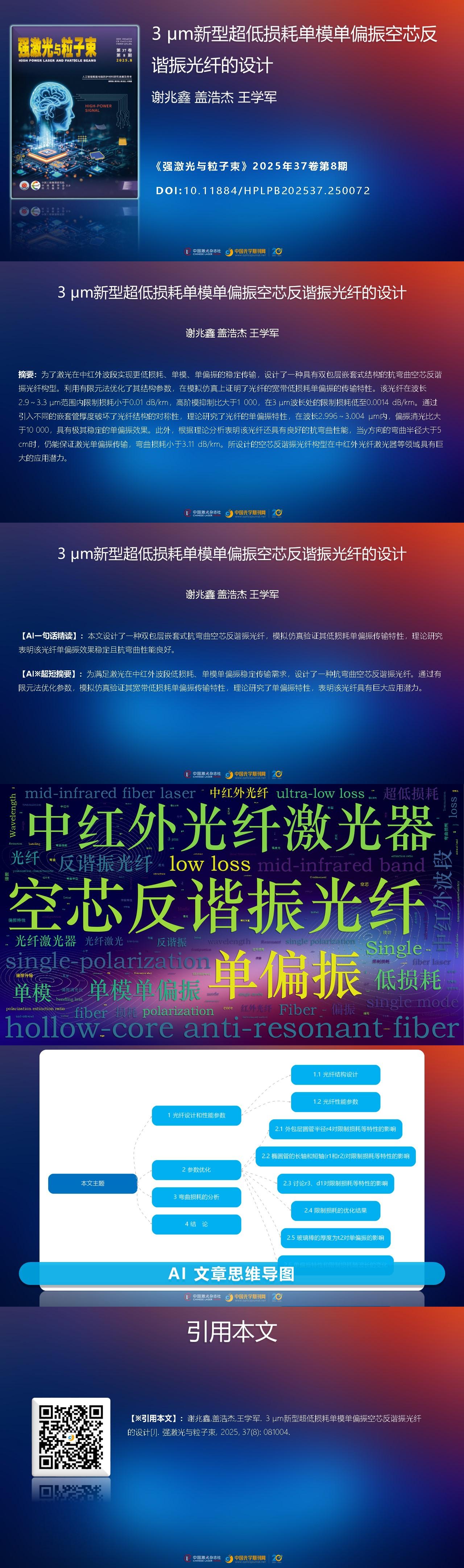 Zhaoxin Xie, Haojie Ge, Xuejun Wang. Design of novel ultra-low loss single-mode single-polarization hollow-core anti-resonant fiber at 3 μm wavelength[J]. High Power Laser and Particle Beams, 2025, 37(8): 081004