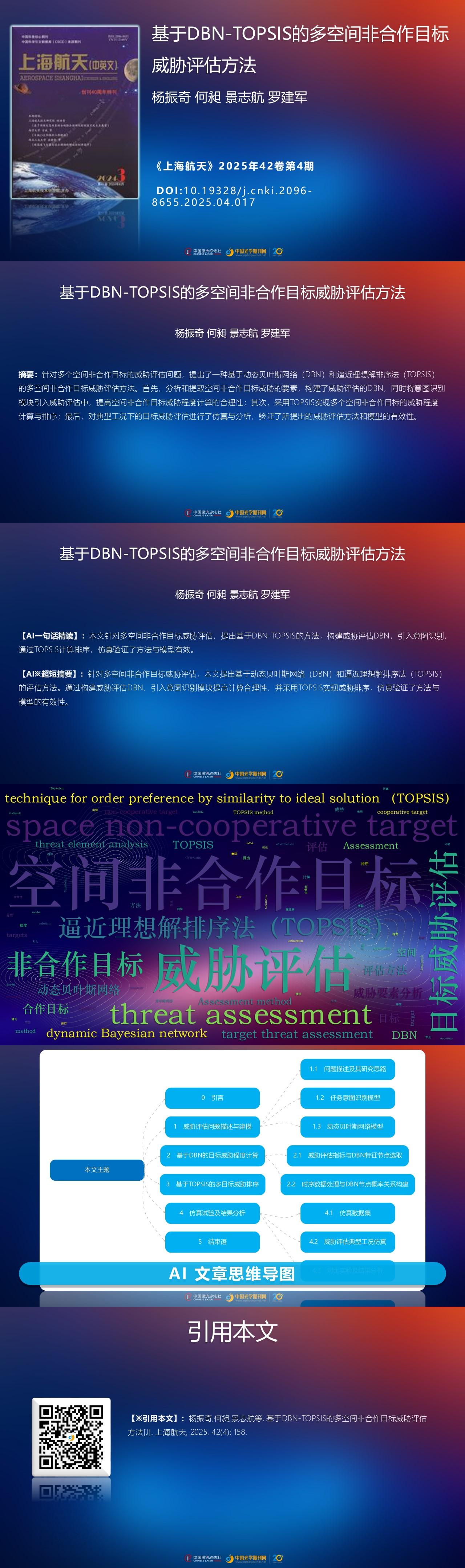 Zhenqi YANG, Chang HE, Zhihang JING, Jianjun LUO. DBN-TOPSIS-based Multi-space Non-cooperative Target Threat Assessment Method[J]. AEROSPACE SHANGHAI, 2025, 42(4): 158