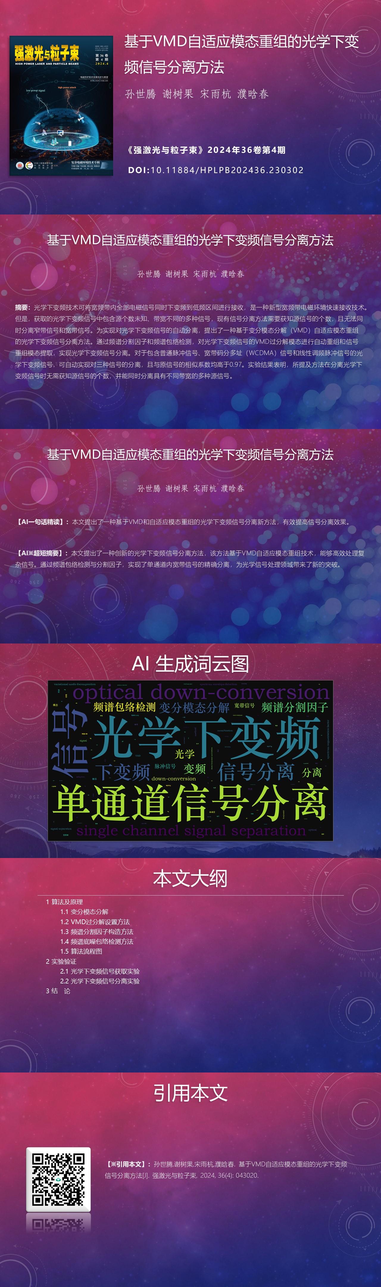 Shiteng Sun, Shuguo Xie, Yuhang Song, Hanchun Pu. Optical down-conversion signal separation method based on VMD adaptive modal recombination[J]. High Power Laser and Particle Beams, 2024, 36(4): 043020