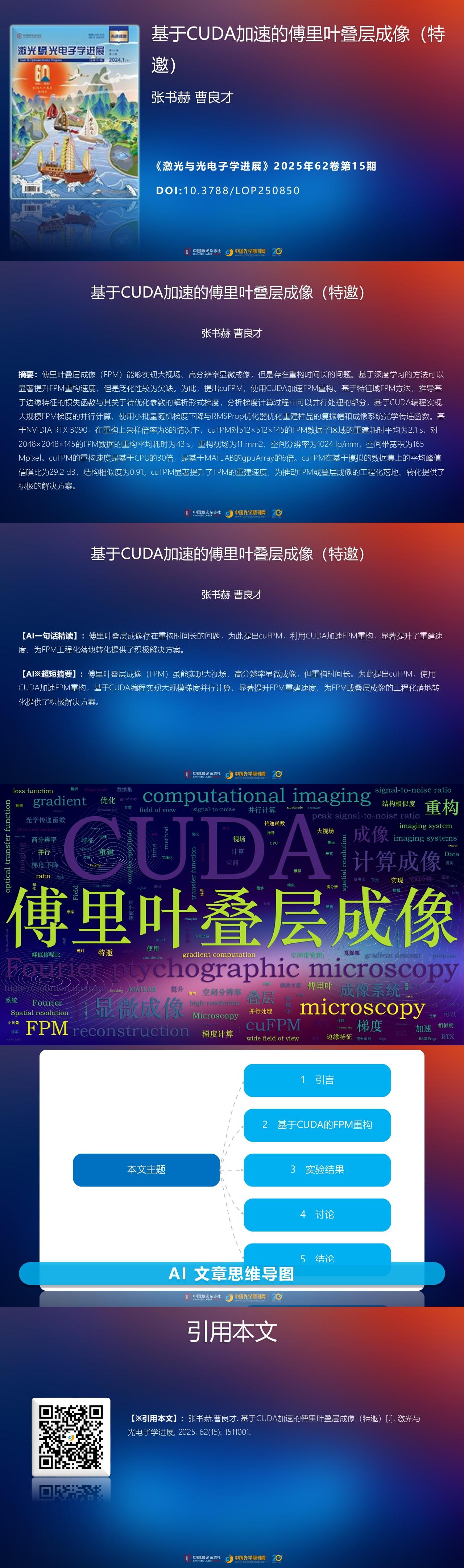 Shuhe Zhang, Liangcai Cao. CUDA-Accelerated Fourier Ptychographic Microscopy (Invited)[J]. Laser & Optoelectronics Progress, 2025, 62(15): 1511001