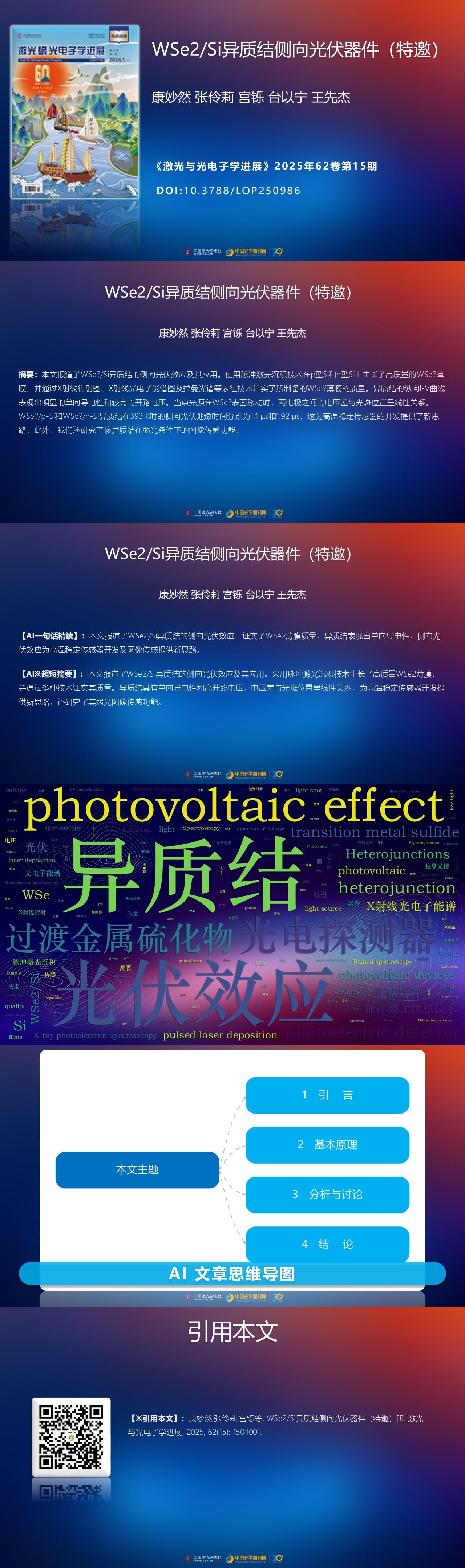 Miaoran Kang, Lingli Zhang, Shuo Gong, Yining Tai, Xianjie Wang. Lateral Photovoltaic Devices of WSe2/Si Heterojunctions (Invited)[J]. Laser & Optoelectronics Progress, 2025, 62(15): 1504001